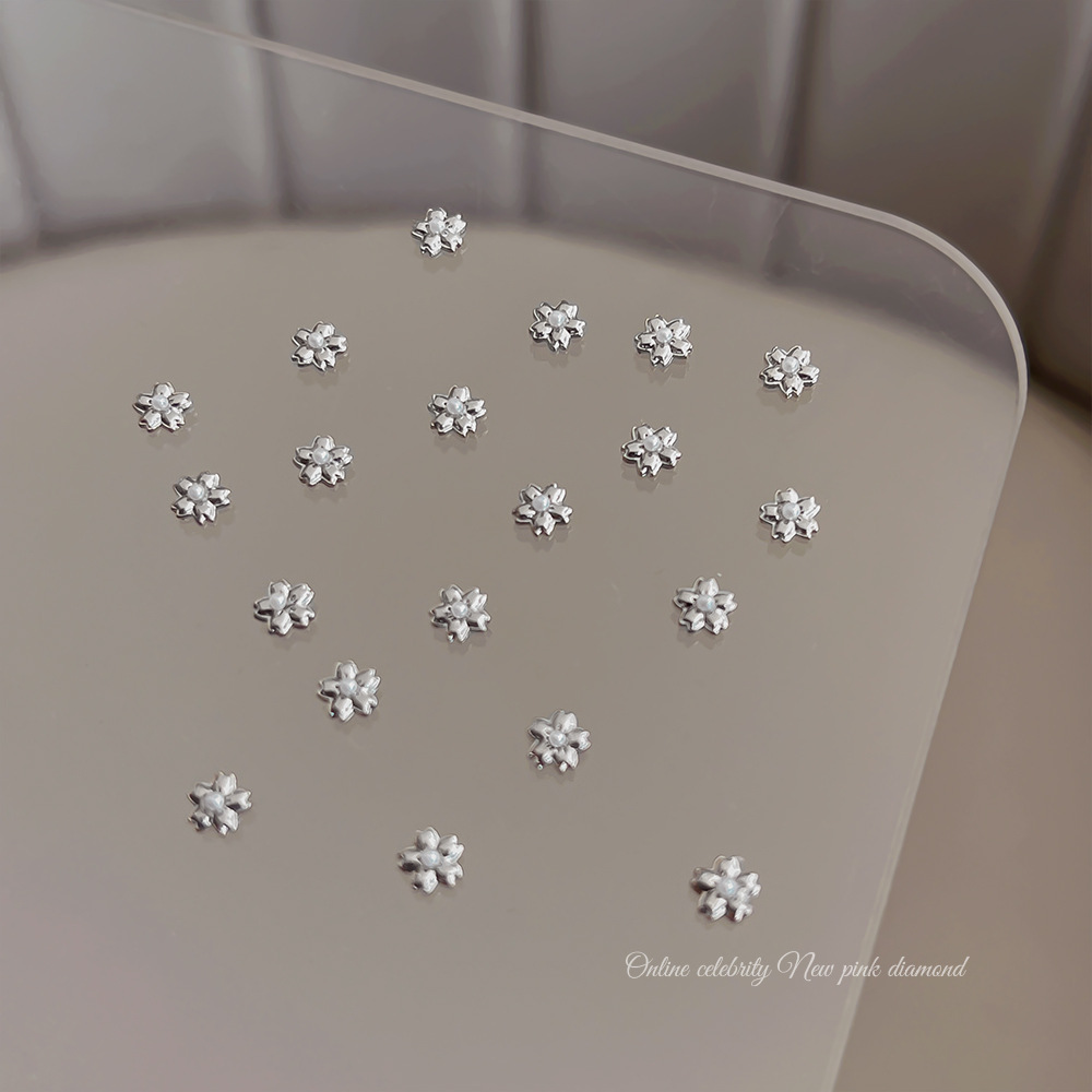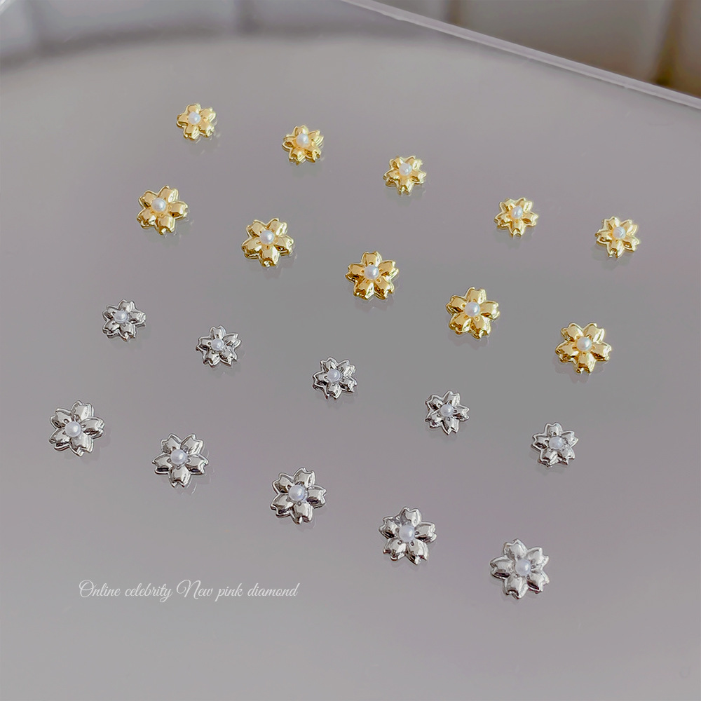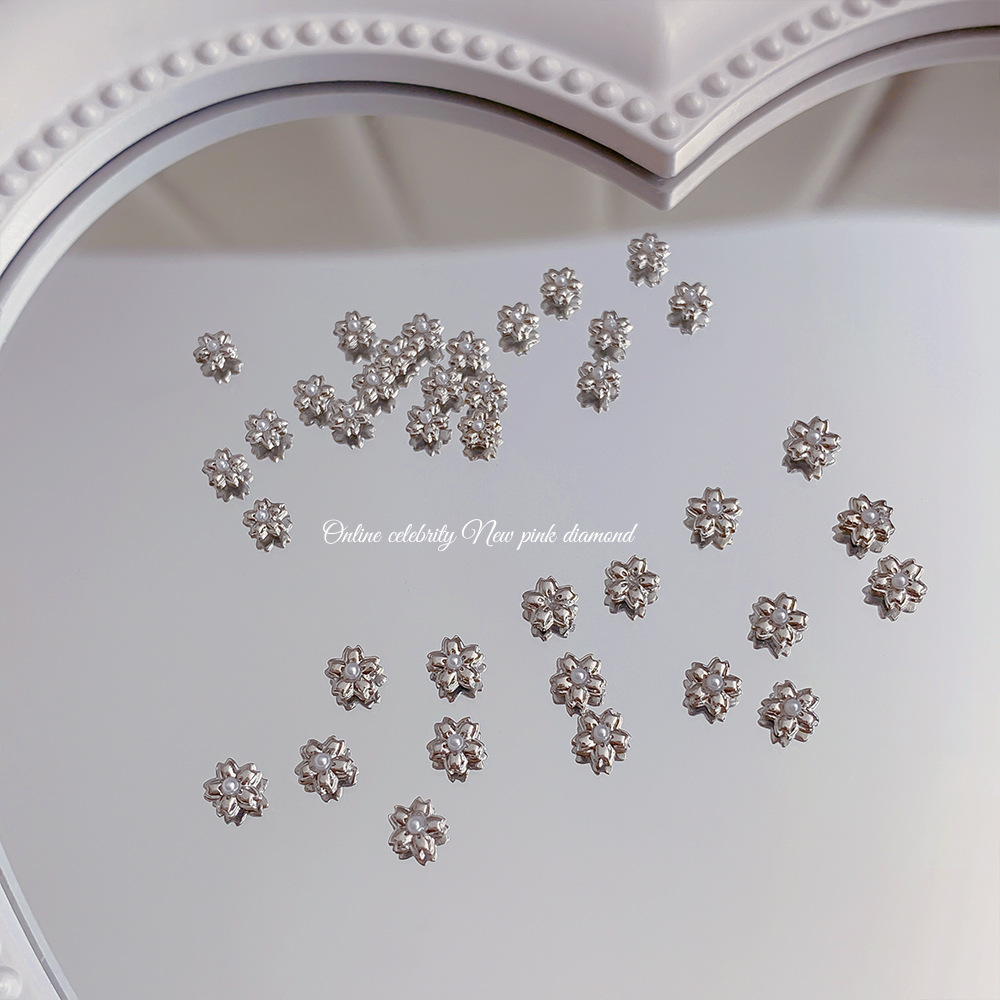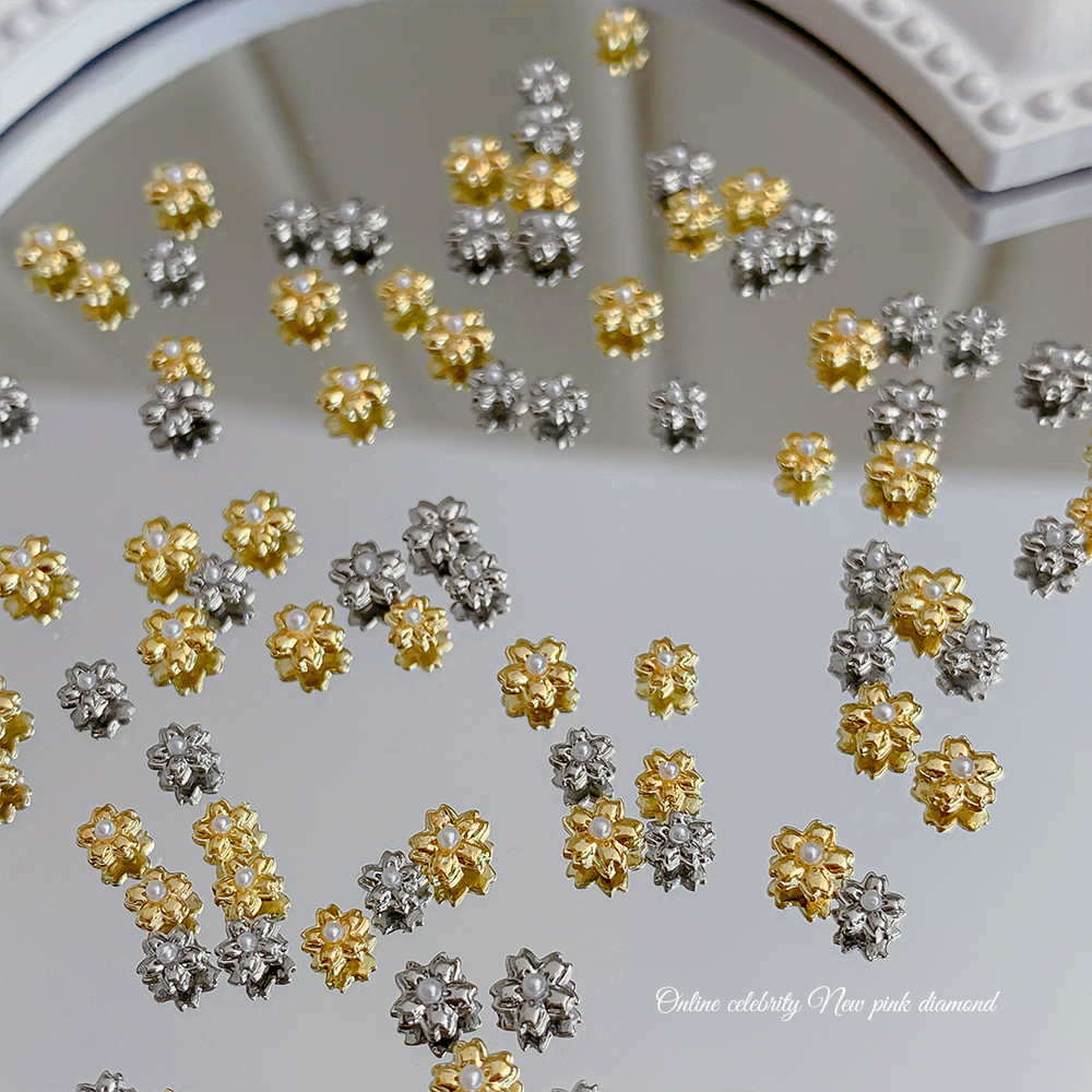 紫荊花ネイルアクセサリーミニ花立体真珠合計ドリルレトロ銀色爪貼り爆金卸売り
