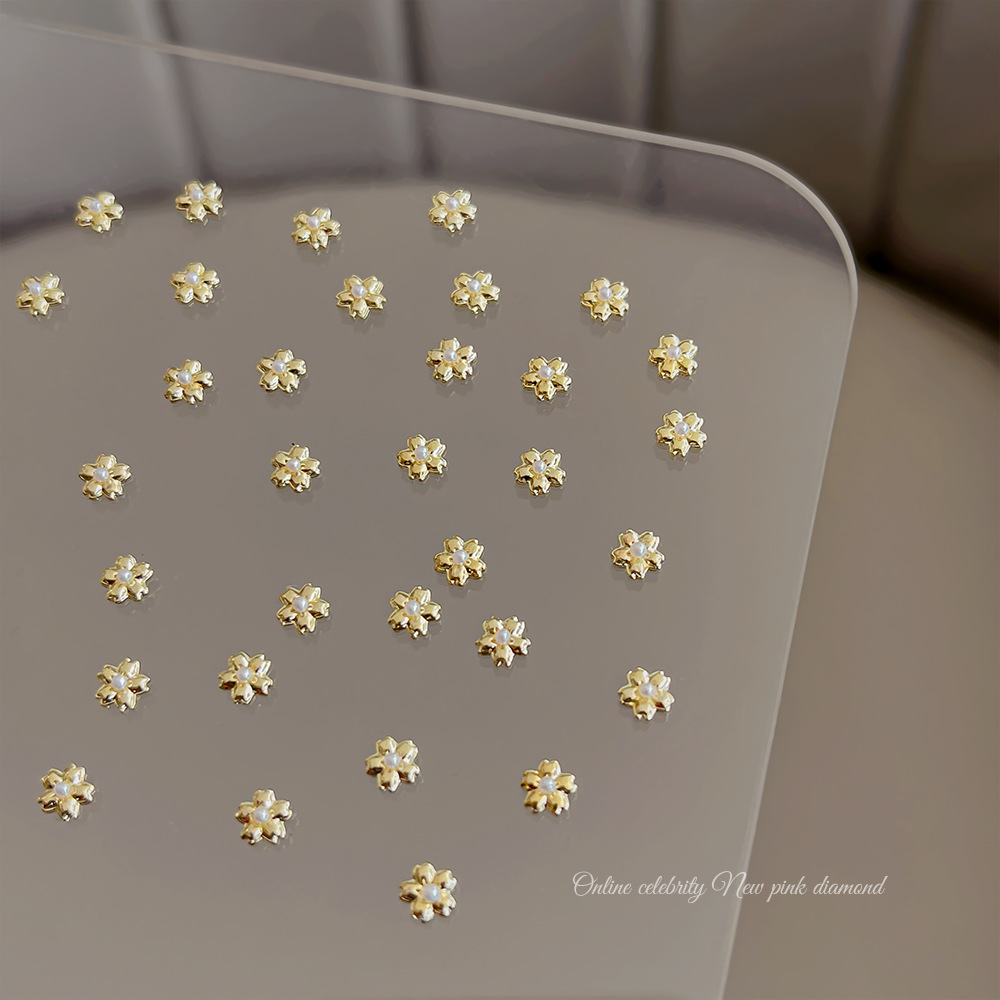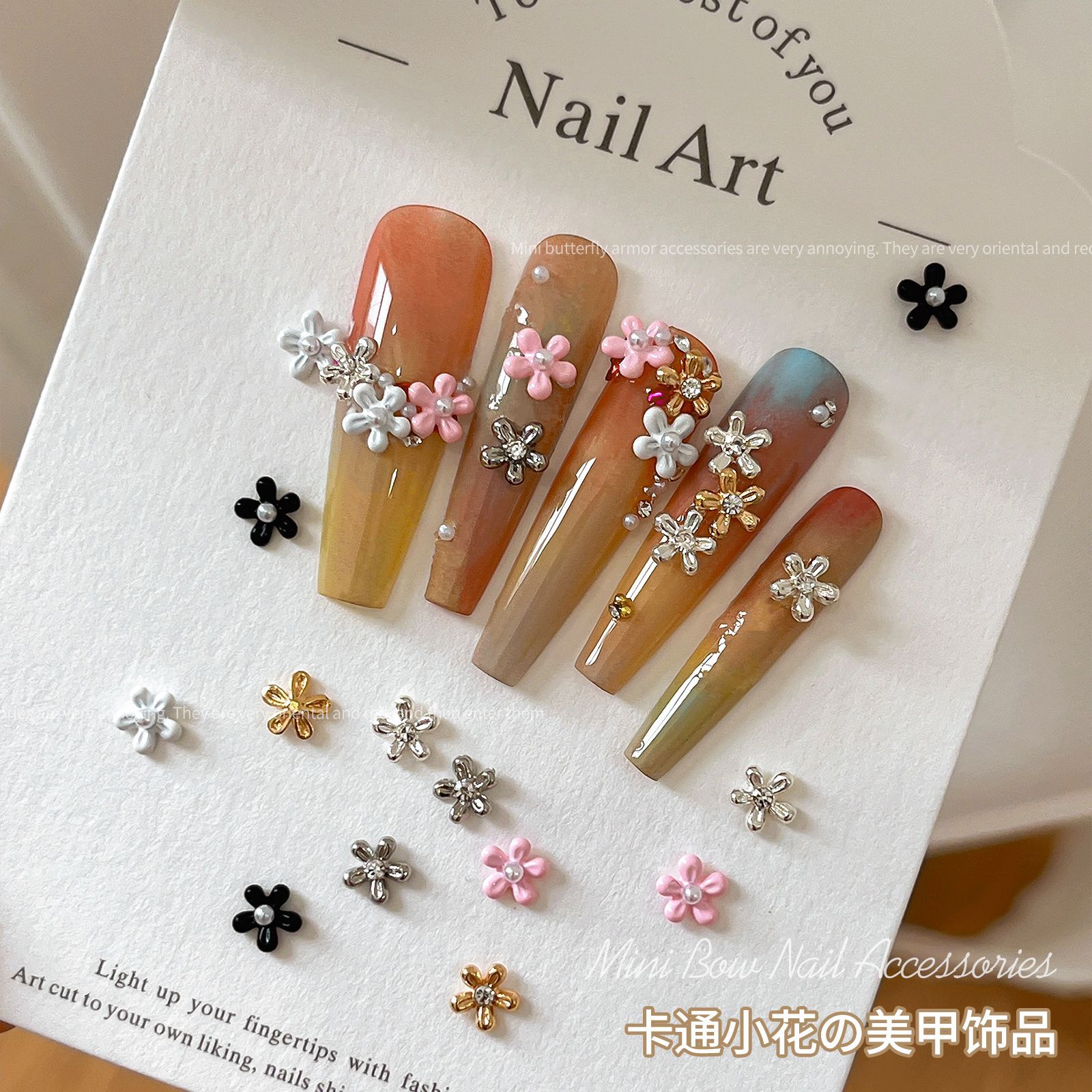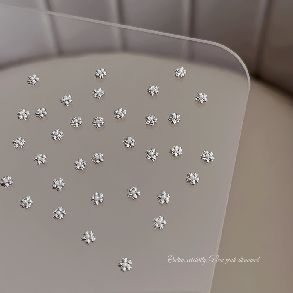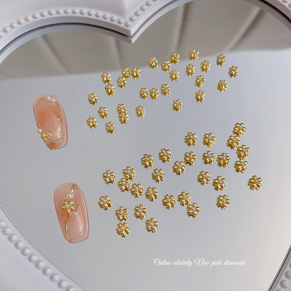 紫荊花ネイルアクセサリーミニ花立体真珠合計ドリルレトロ銀色爪貼り爆金卸売り