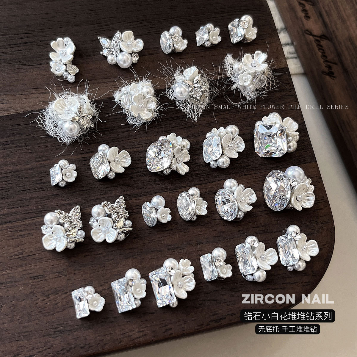 白色小花锆石堆堆钻美甲饰品轻奢爆闪无底托椭圆立体指甲配饰批发