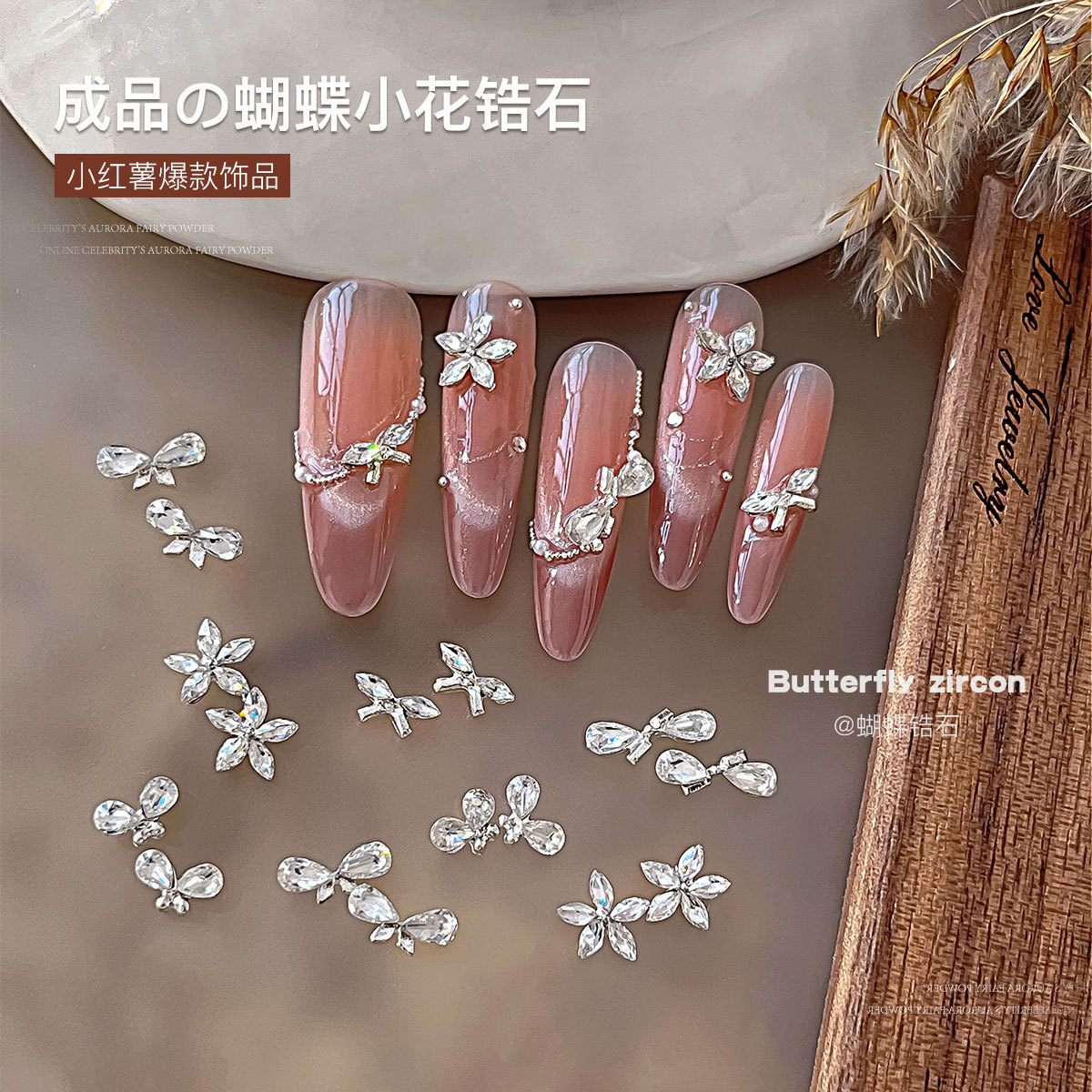 新款蝴蝶锆石堆钻美甲饰品网红高级感爆闪五瓣花领结指甲装饰批发