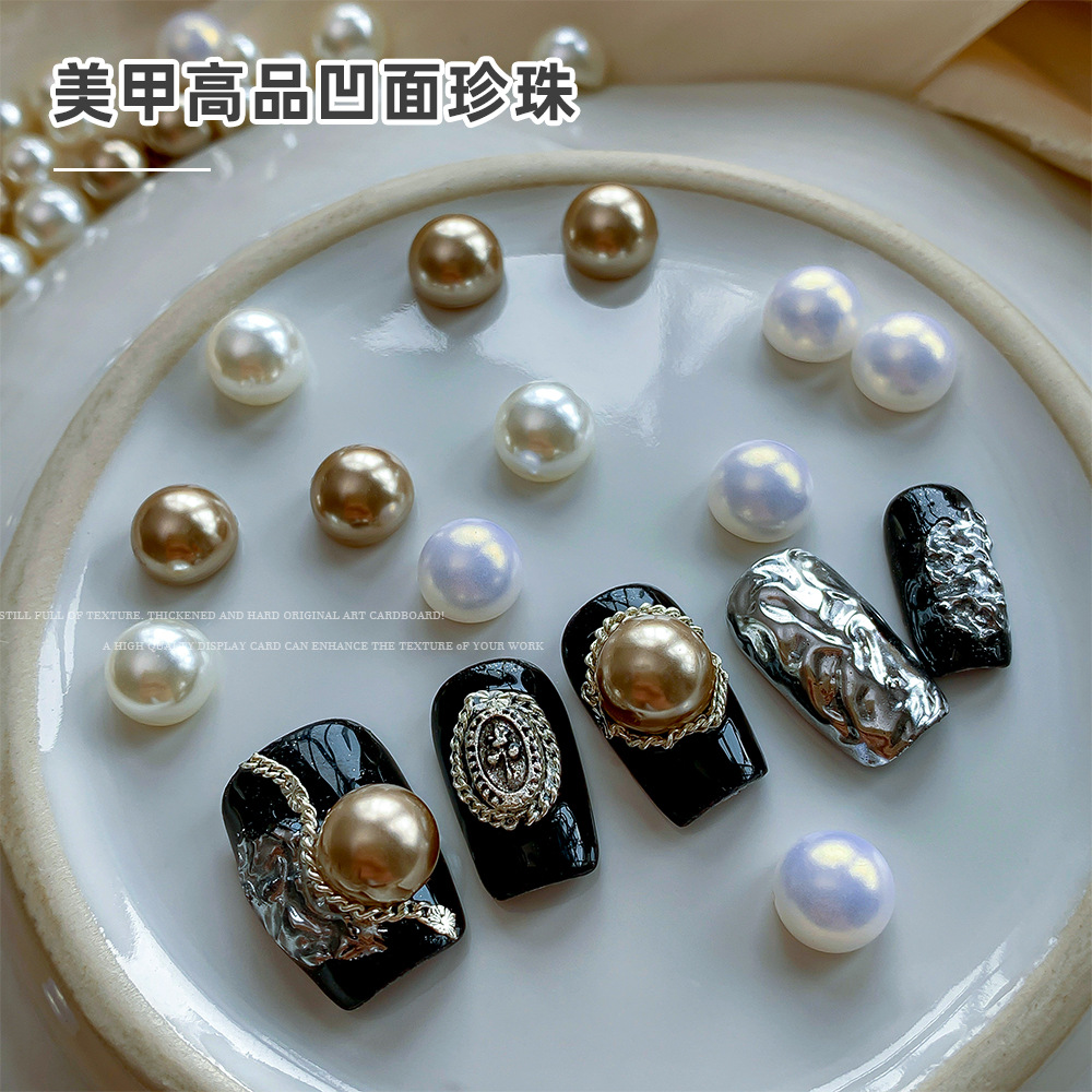 起爆凹面は皮をむいていない高品質真珠ネイルアクセサリーは甲の立体爪に合わせて真珠ドリル卸売りを飾る