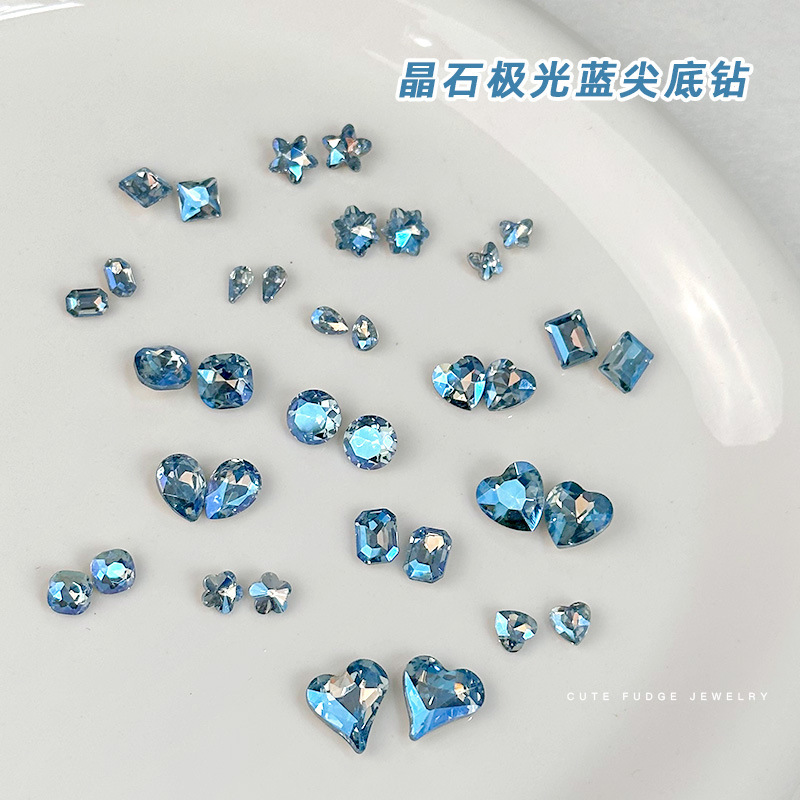 結晶石極光ブルーネイルアクセサリー愛肥方長直角花精致氷透尖底ドリル装飾品卸売り