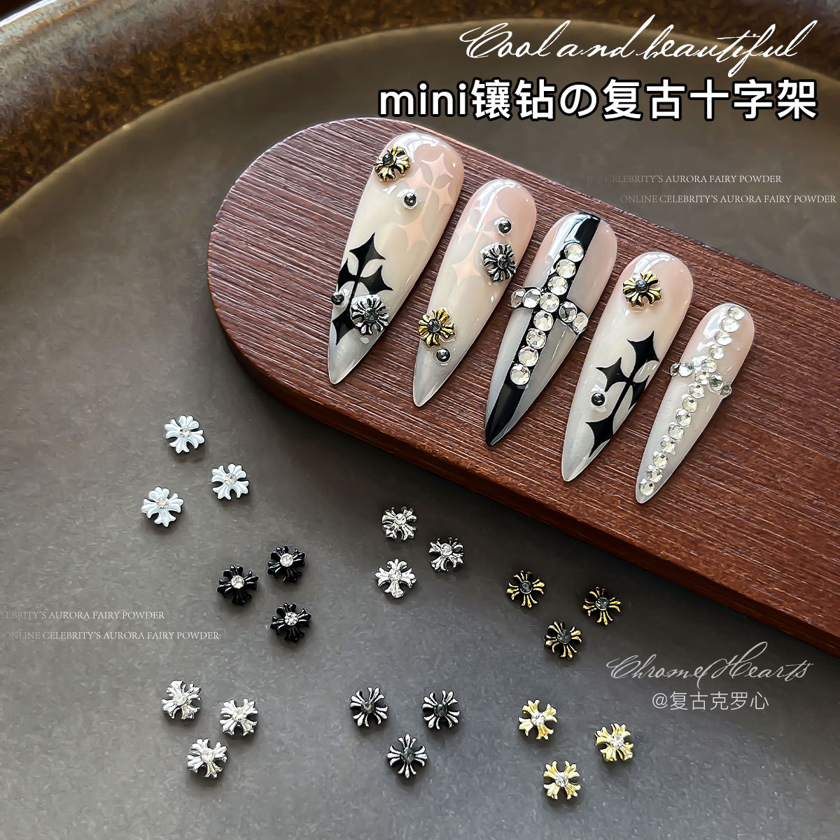 ミニクロスクローハートネイルアートジュエリーパンクスタイルパーソナライズされたダイヤモンド四芒星ネイルダイヤモンド装飾卸売