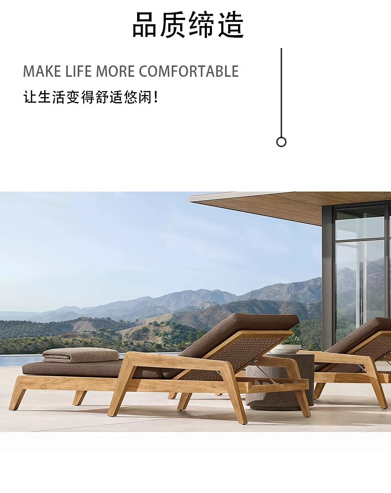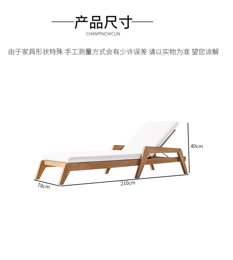 屋外チーク木寝椅子リゾートプールビーチベッド別荘ホテル露天レジャー屋外花園実木ベッド
