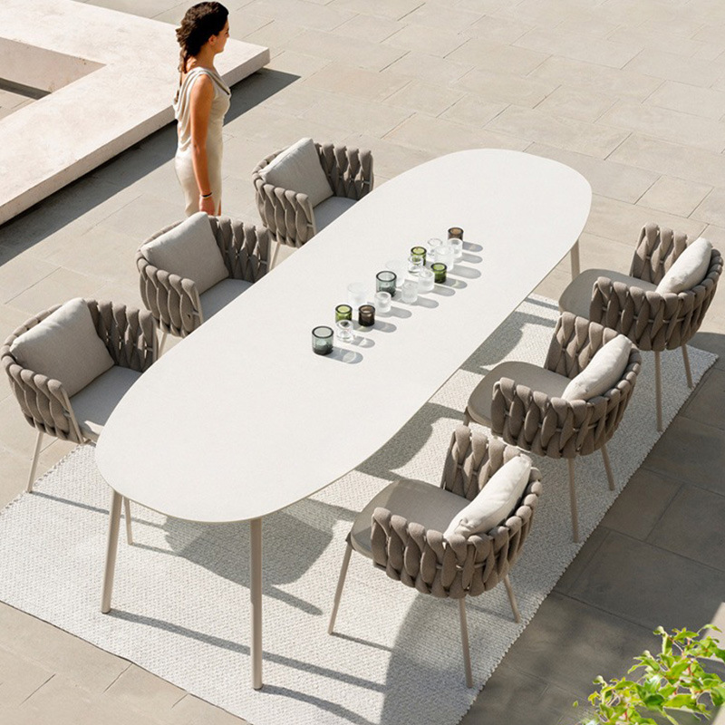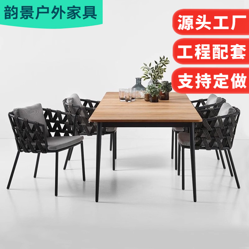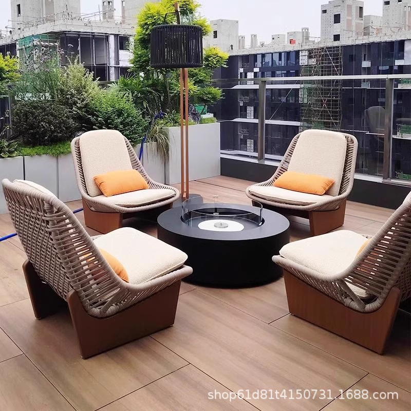 北欧屋外ロープテーブルと椅子デザイナー屋外中庭ガーデン籐椅子ホテルサンルーム防水屋外家具