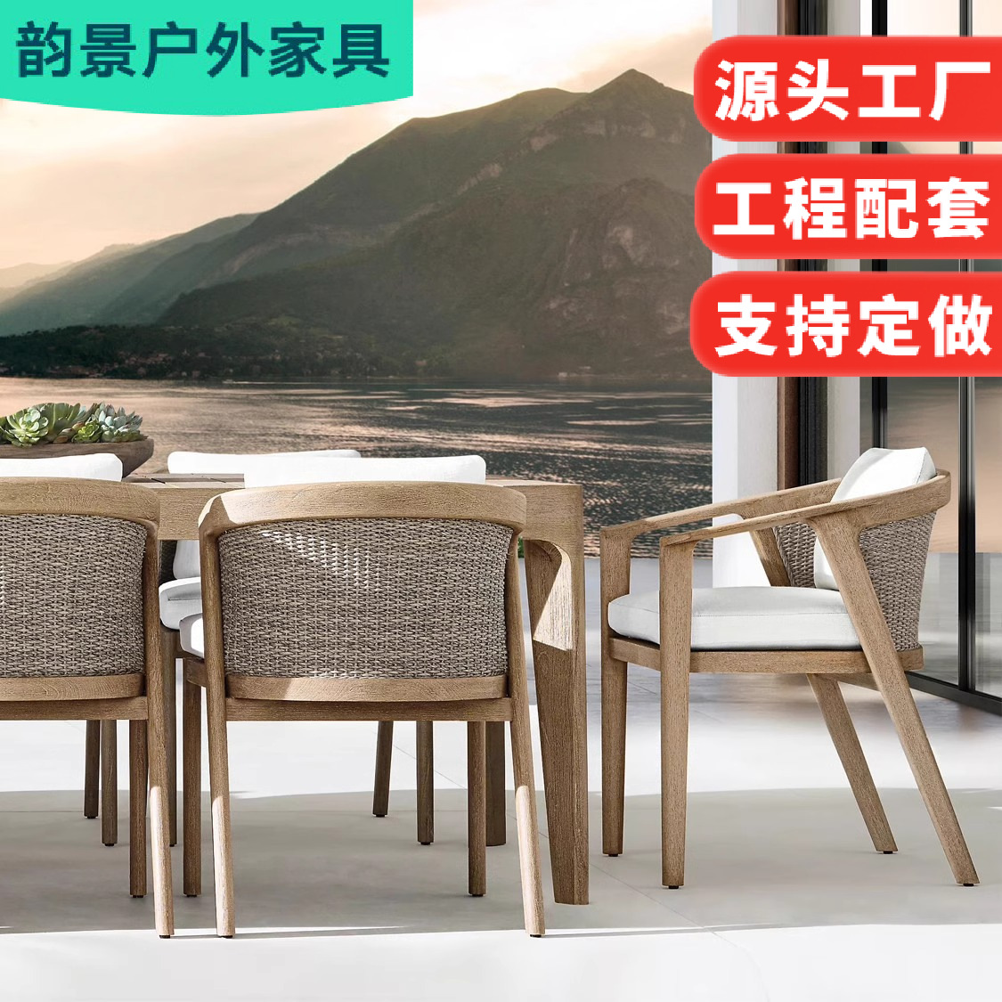 屋外庭園チーク木テーブルと椅子別荘露天花園防水日焼け止め屋外露店レジャー藤編テーブルと椅子の組み合わせ
