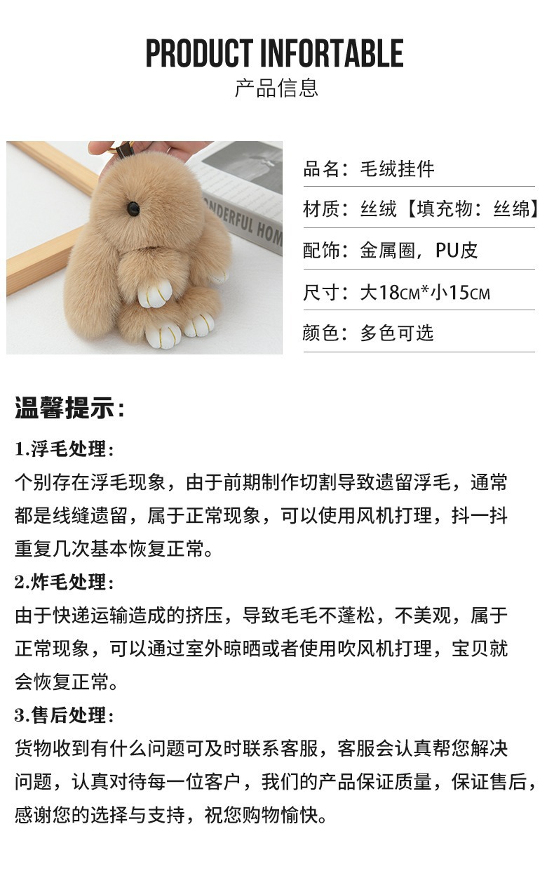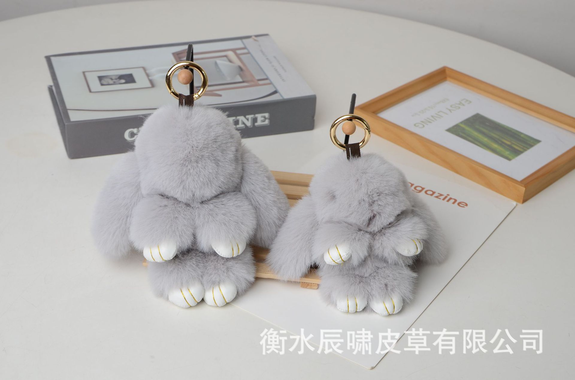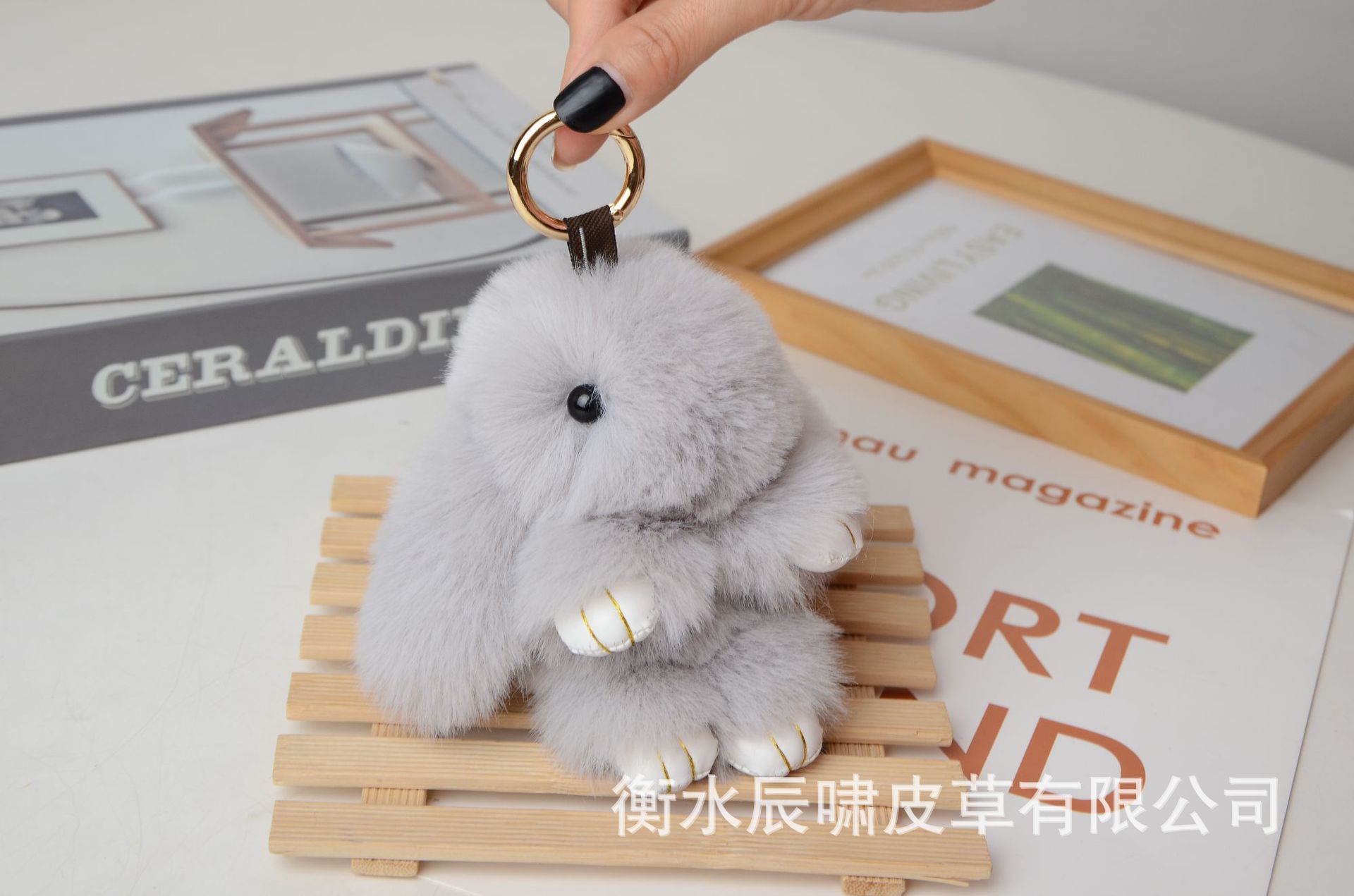 超萌はラッキーズの毛の小さいウサギのカバンをまねて大きいサイズのウサギの自動車のアクセサリのぬいぐるみの鍵を掛けます。