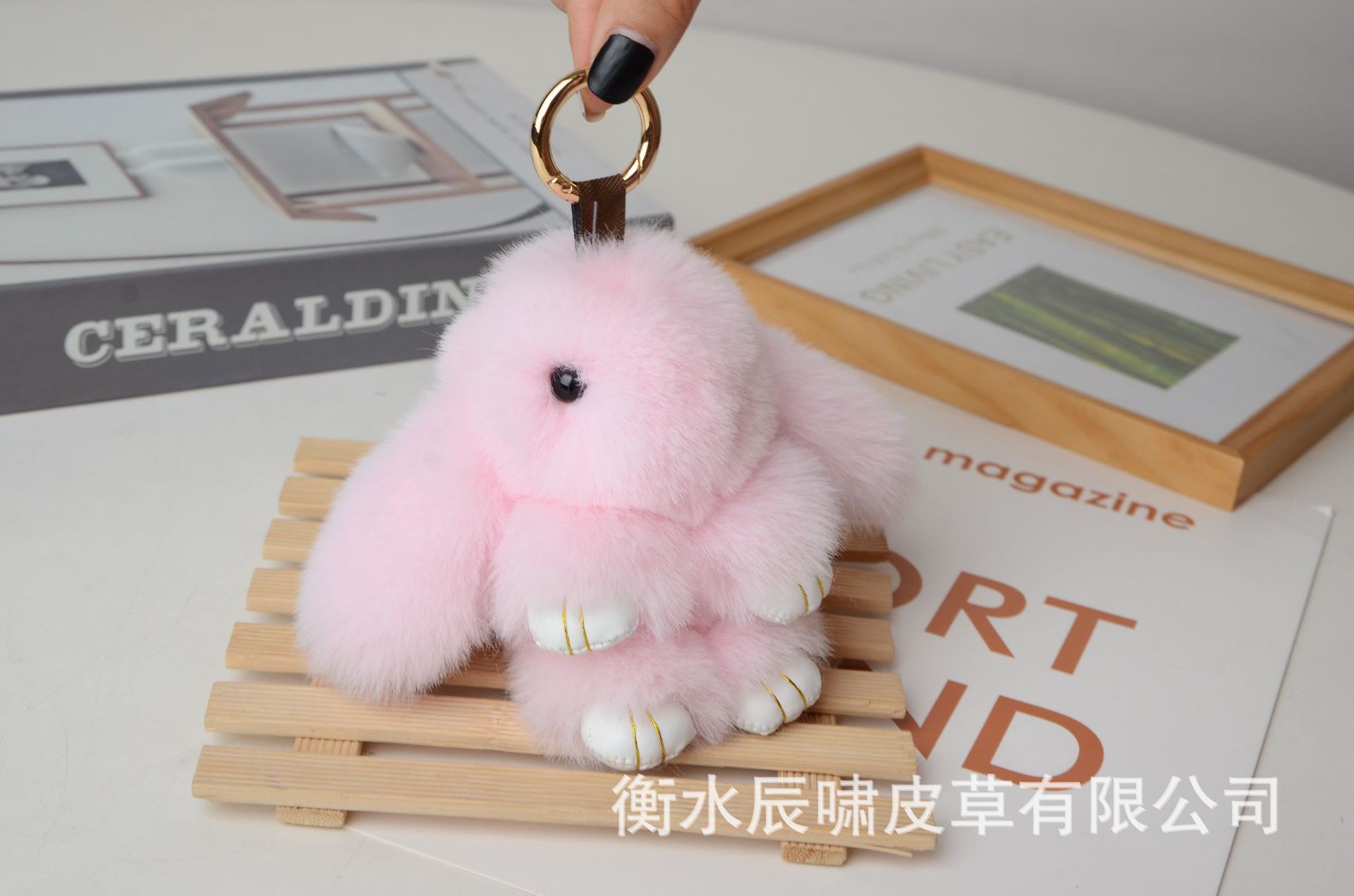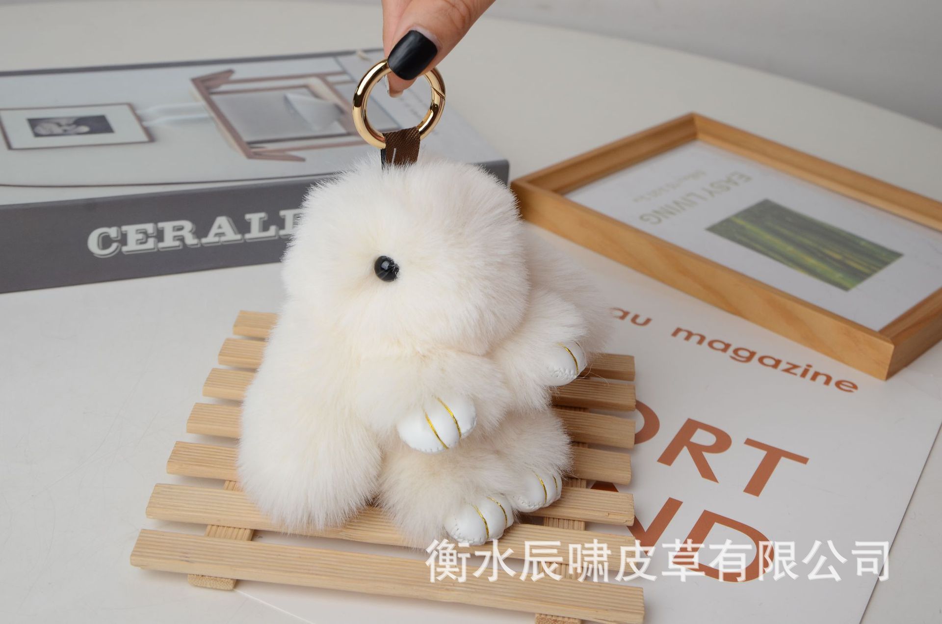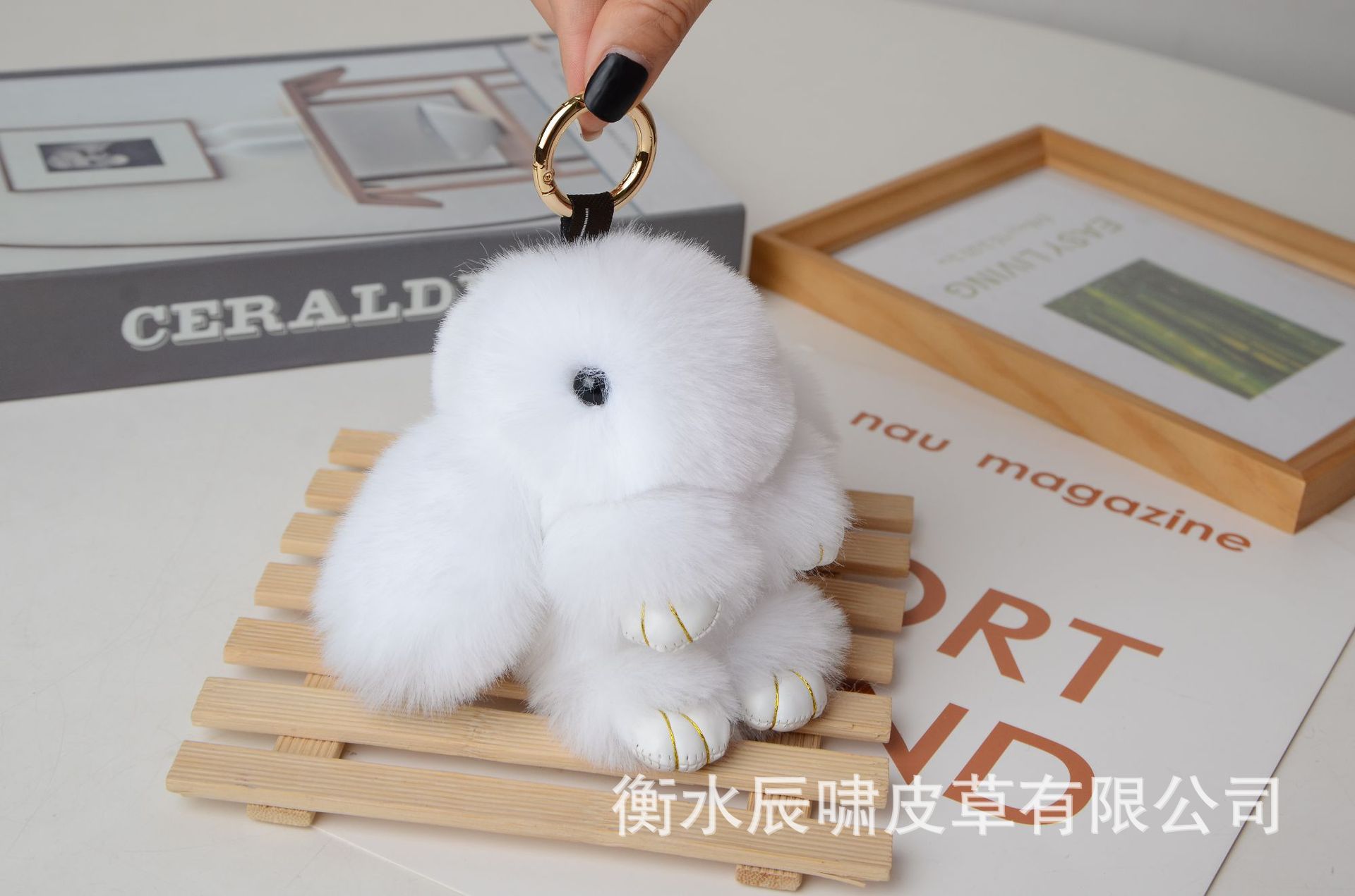 イミテーションレッキスファーの死んだウサギの毛皮のぬいぐるみペンダント、かわいいウサギのランドセル飾り、小さなウサギのファッショナブルなキーホルダー、キュートな飾り