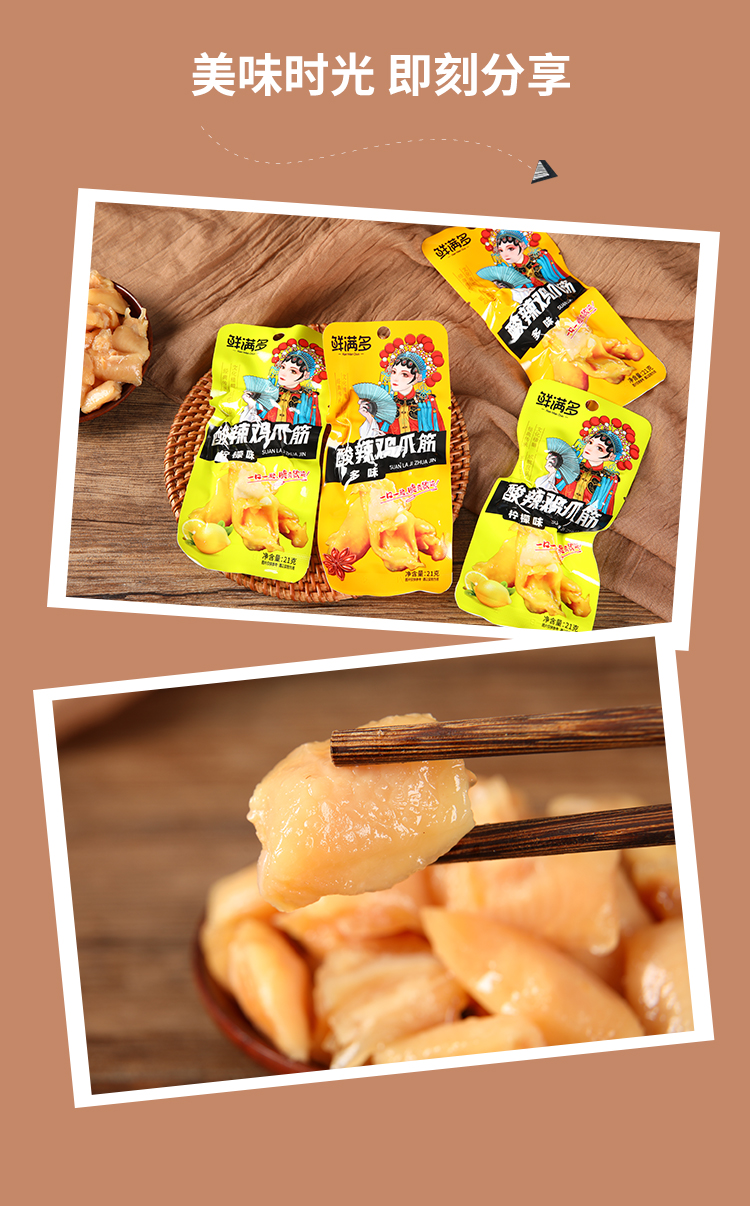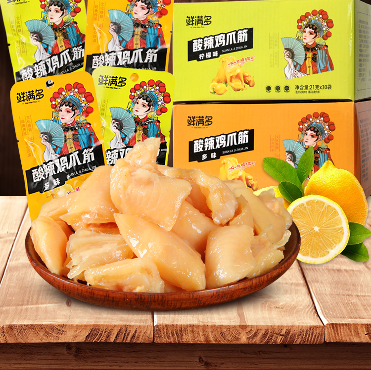 新鮮な多鶏の爪の筋の21gのクエン酸の辛い鶏の足の筋の多味の鳳の爪の骨のない鶏の爪の小さい間食の軽食の下で酒を飲みます。