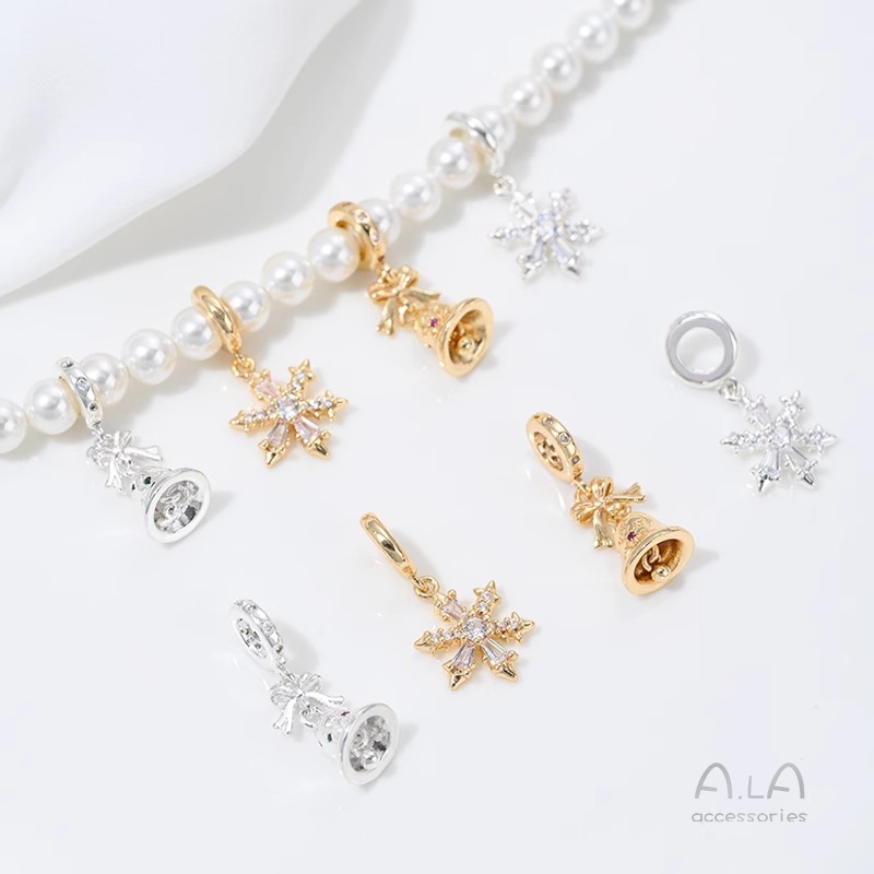 強保色14k包金メッキ純銀雪花ストラップカラージルコニウム鈴ペンダント手作りdiyクリスマスアクセサリーペンダント