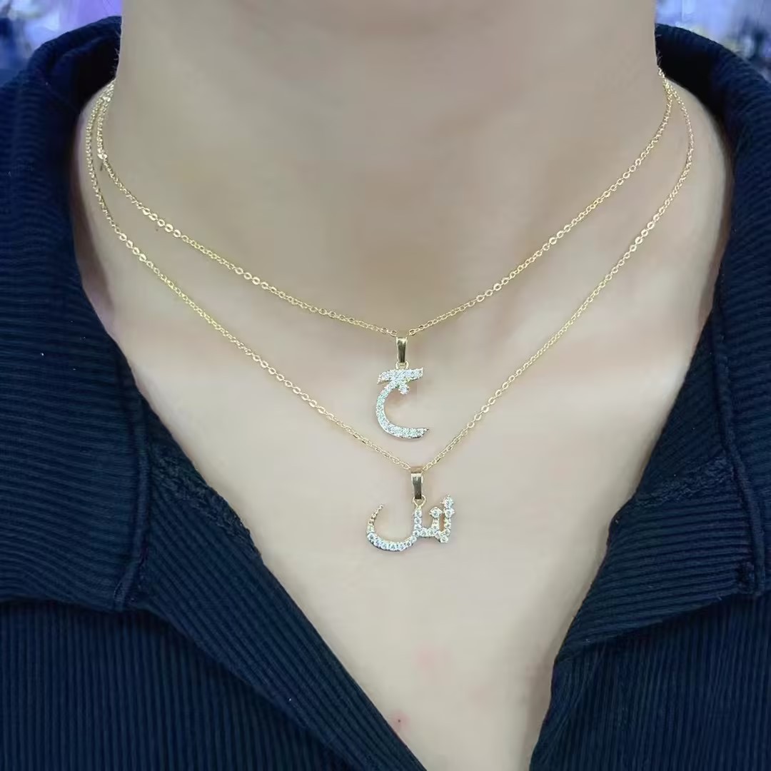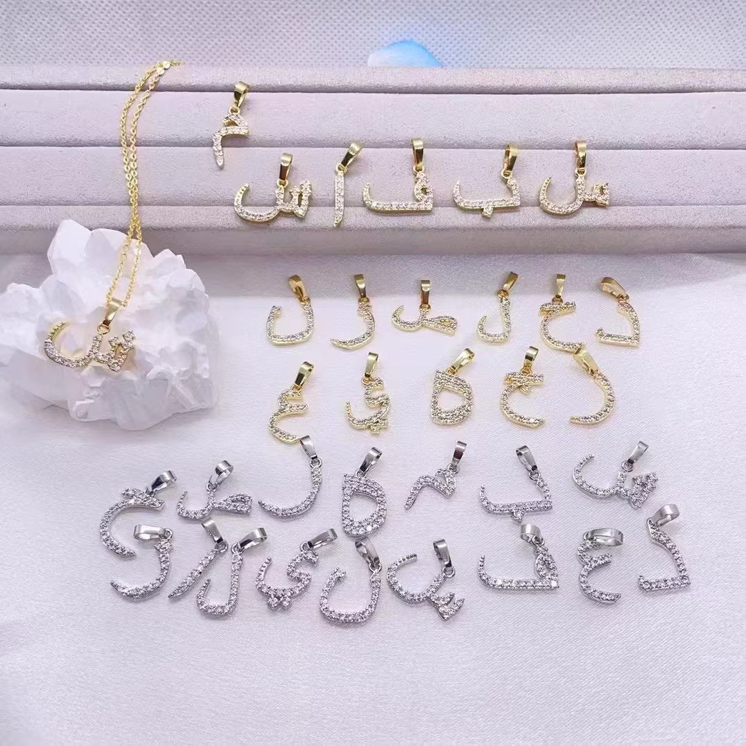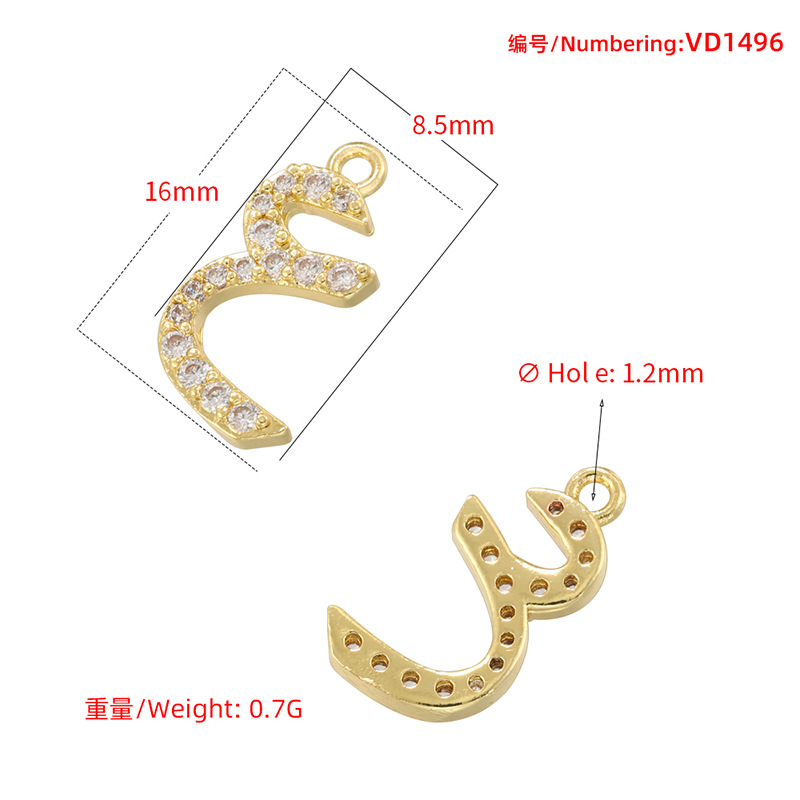 国境を越えて人気のある銅にジルコニアアラビア文字ペンダント女小衆ins風diyアクセサリー卸売りvd1496