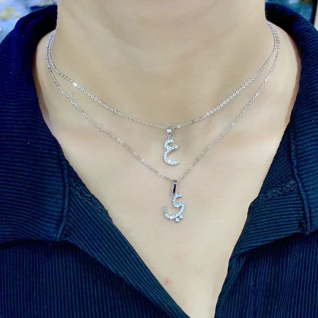 HECHENG ジュエリー クロスボーダー銅製ジルコニア装飾アラビア文字ペンダントネックレス 個性的なヒップホップ文字ネックレス