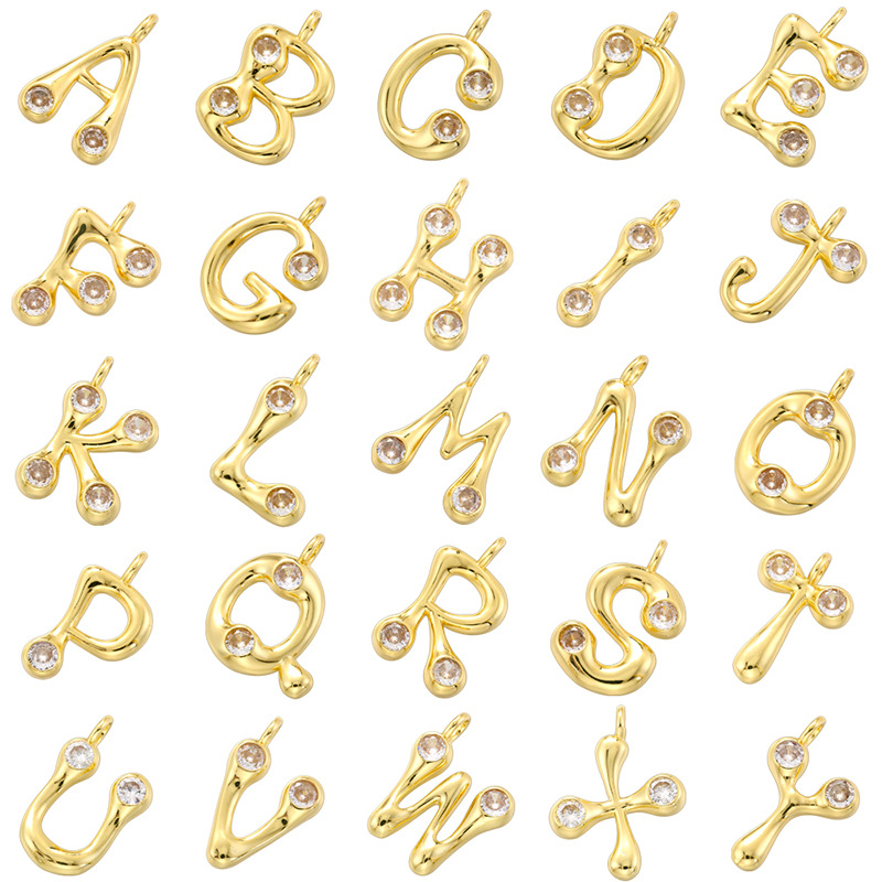 銅メッキ 18 K ゴールドバルーンレターペンダントパーソナライズ DIY ブレスレットネックレスバブル 26 英字ペンダント VD1914
