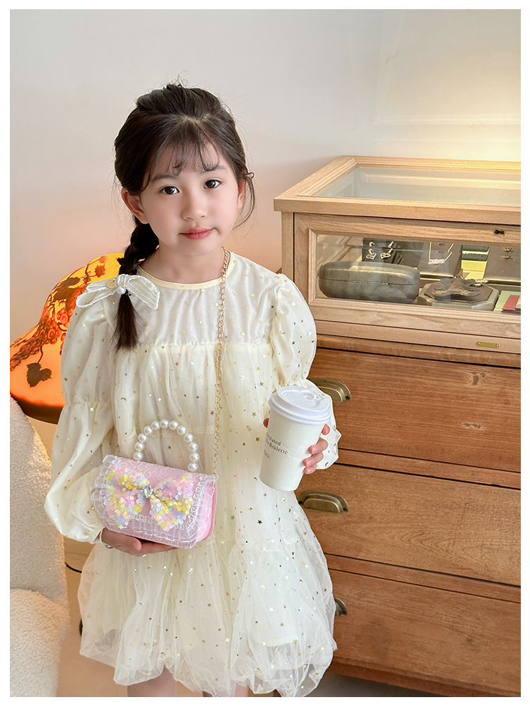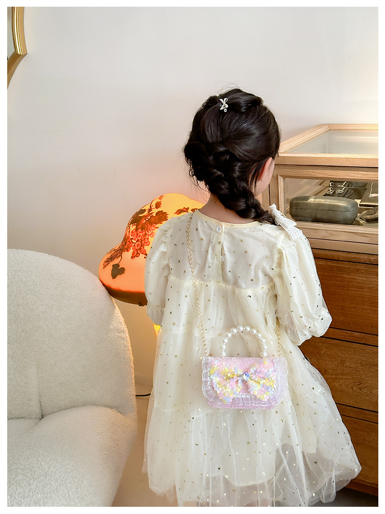 ピンクのスパンコール,紫の花,ピンクのスパンコールの花,ピンク,ピンクのリボンスパンコール,黄色い弓,ピンクの女の子,白人の女の子,白い弓,色とりどりの花