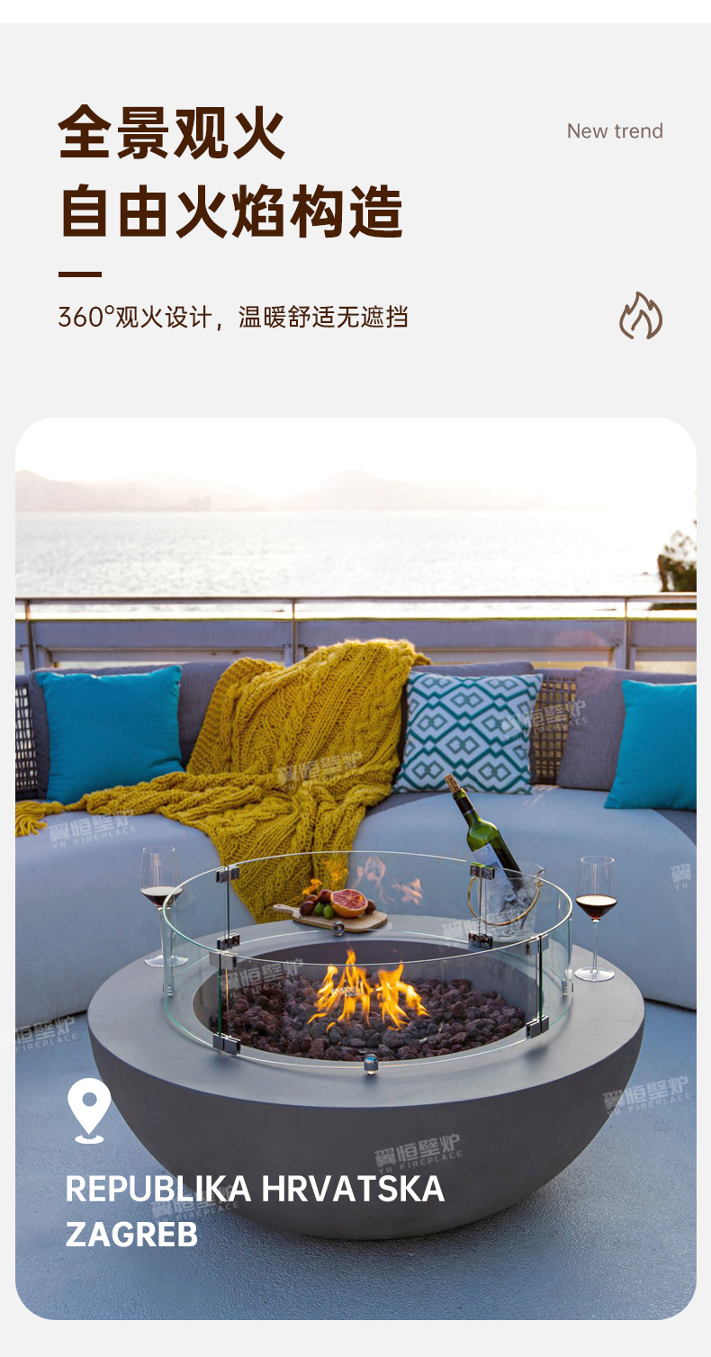 現代屋外装飾暖炉真火ガス暖房器別荘ホテル庭園造景ストーブテーブルアルコール暖炉