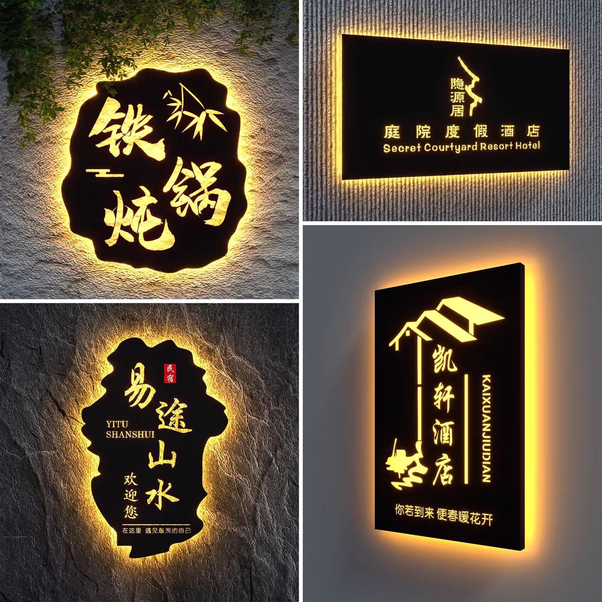 ステンレス透かし彫り表札民宿ホテル店鉄芸表札灯箱広告看板創意発光看板