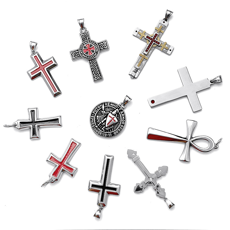 欧美 首饰 红十字军共济会男士锌合金吊坠项链