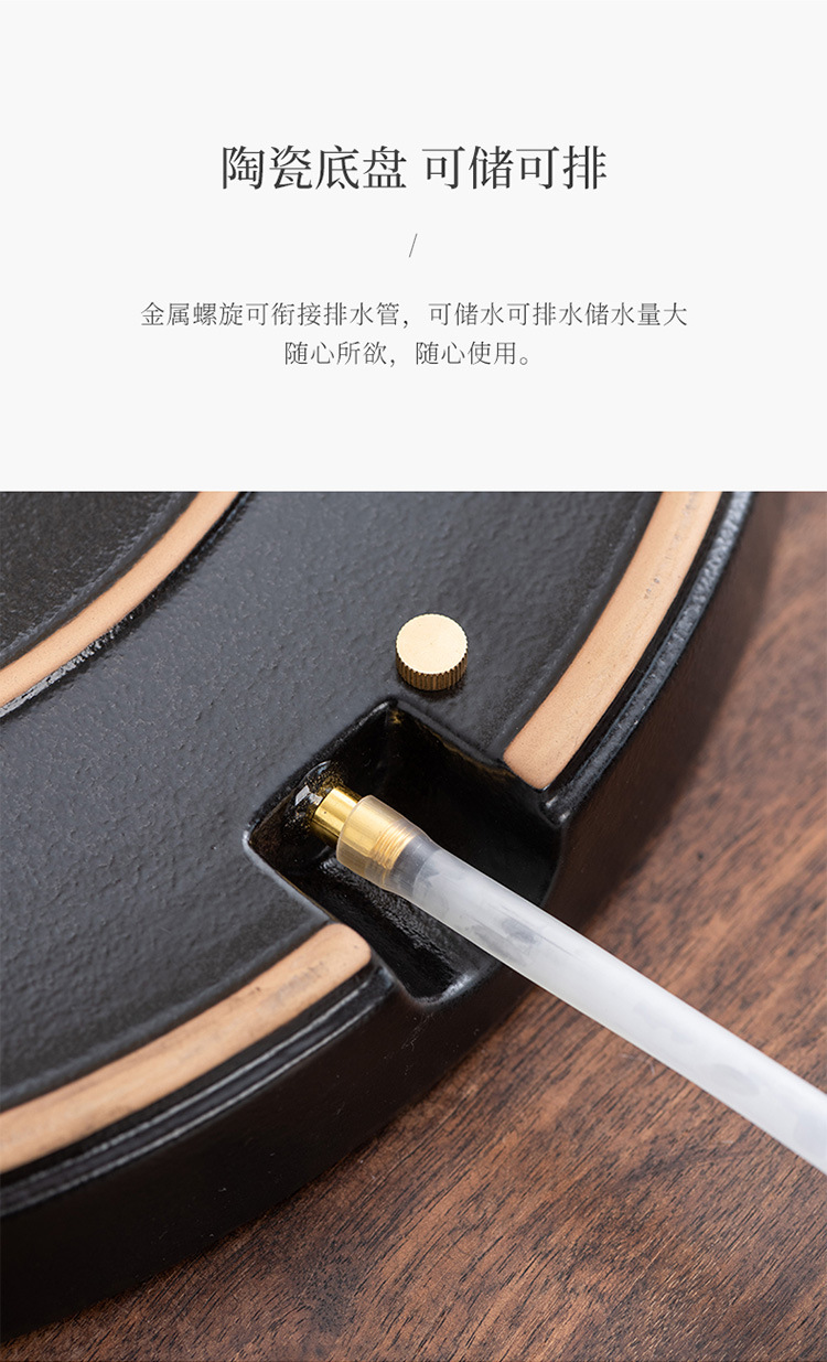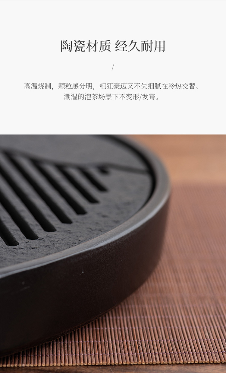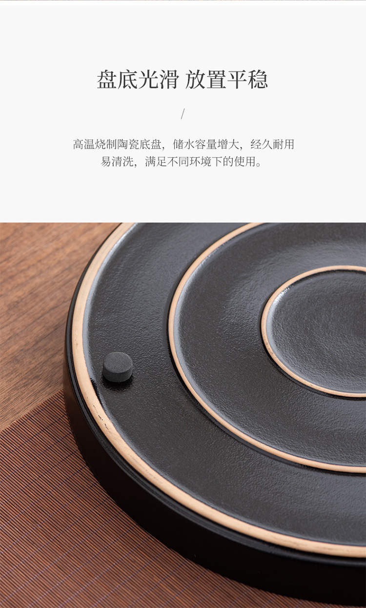 遠山円形陶磁器烏金石茶盤貯水式排水小型茶台茶器シンプル家庭用オフィストレイ