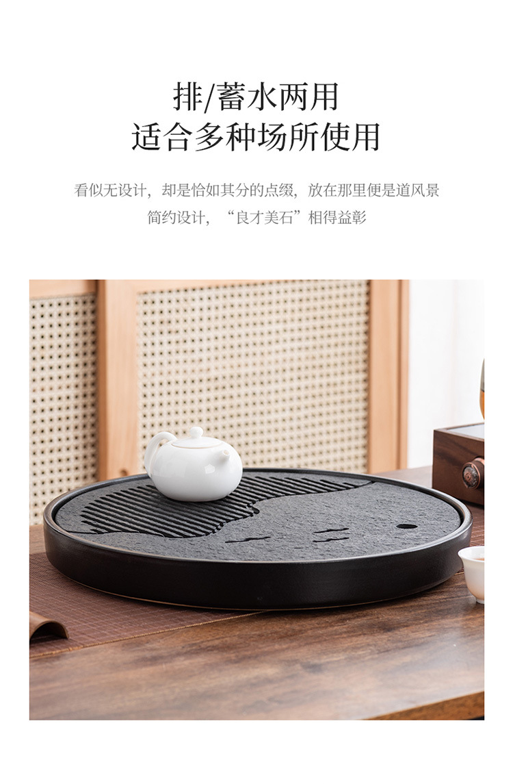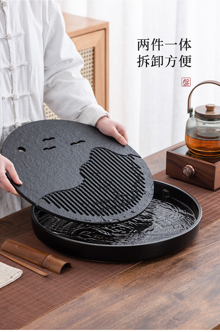 乌金石干泡盘家用新中式沥水圆形陶瓷功夫茶具托盘简约蓄水小茶台