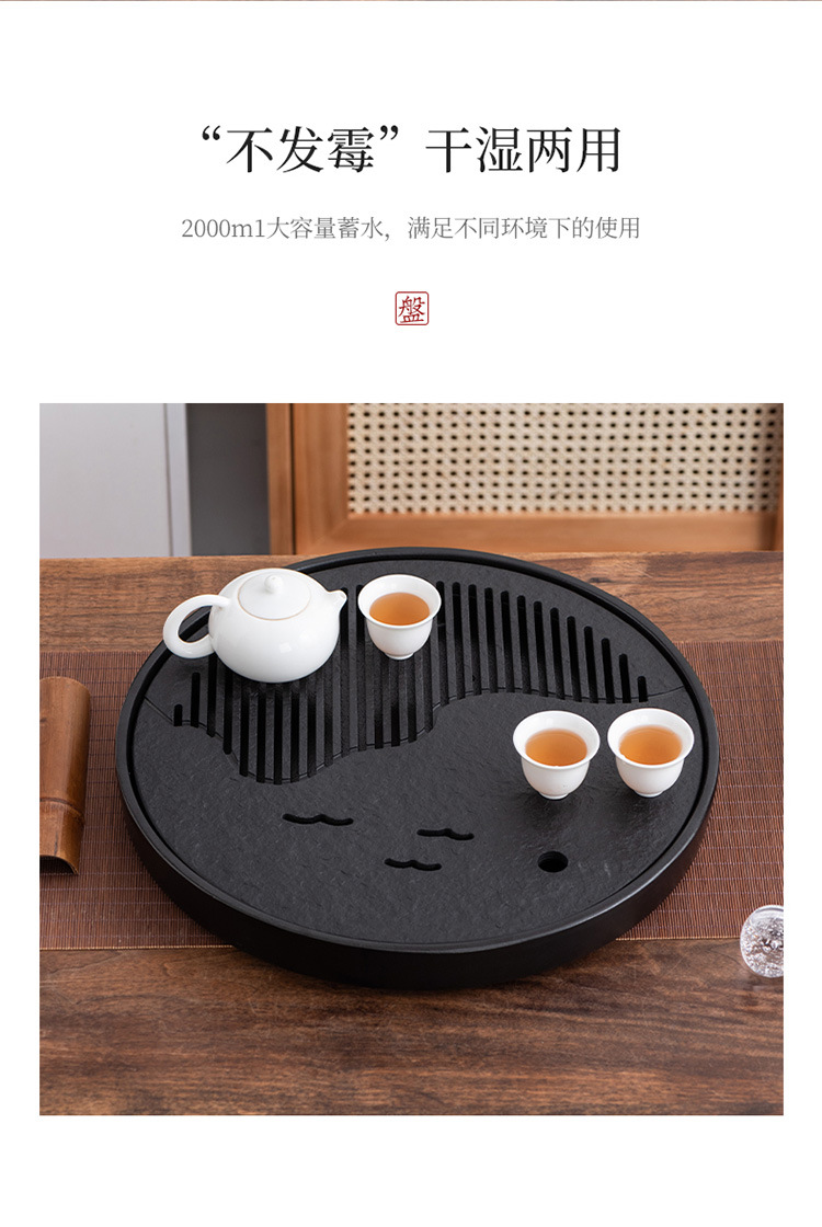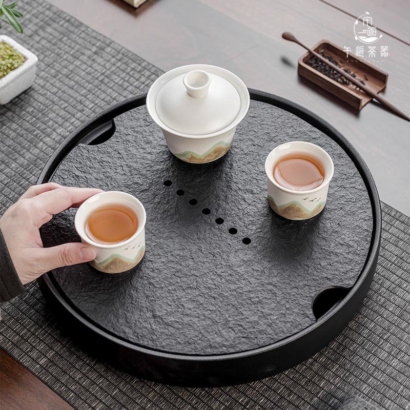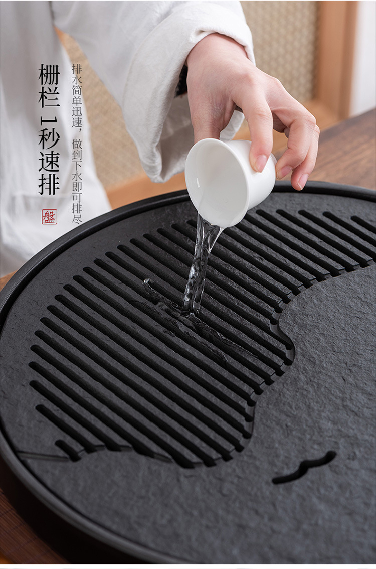 烏金石乾泡盤家庭用新中国式アスファルト円形陶磁器工夫茶器トレーシンプル貯水小茶台