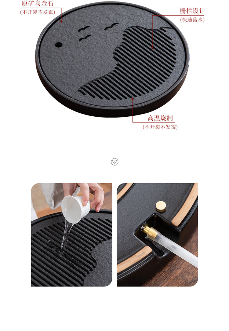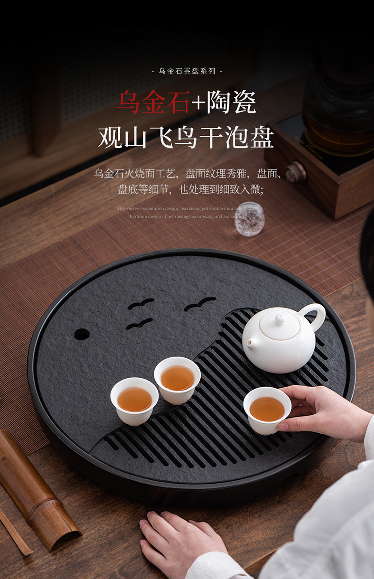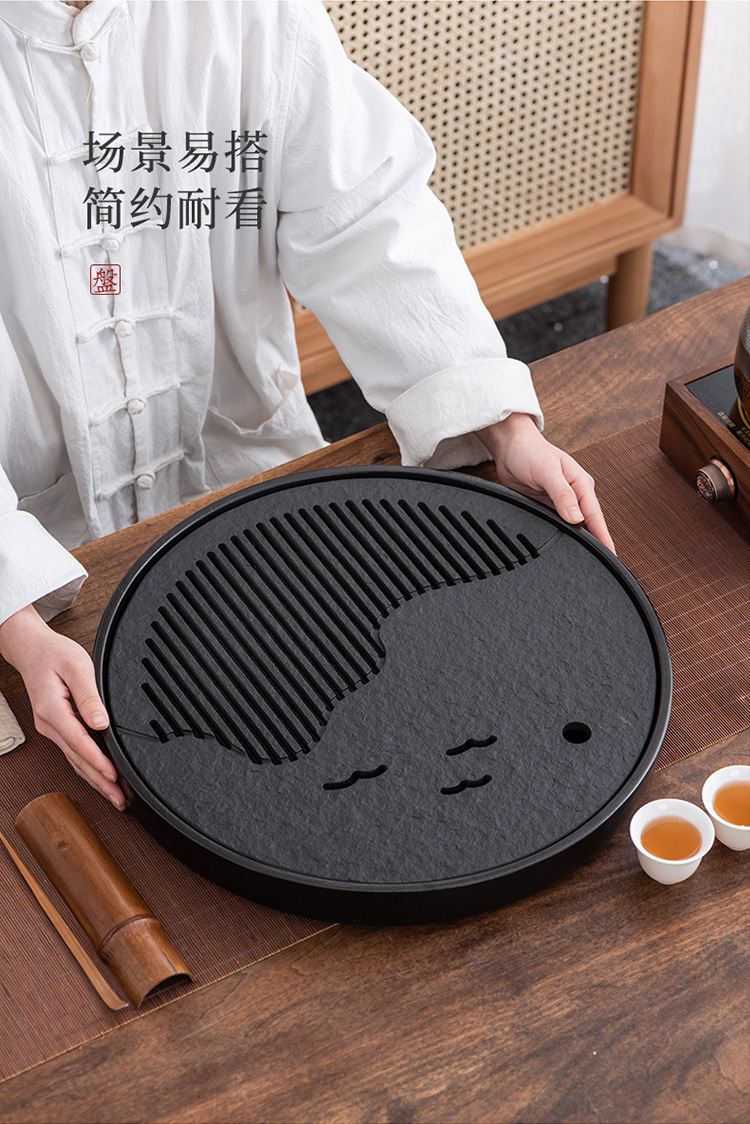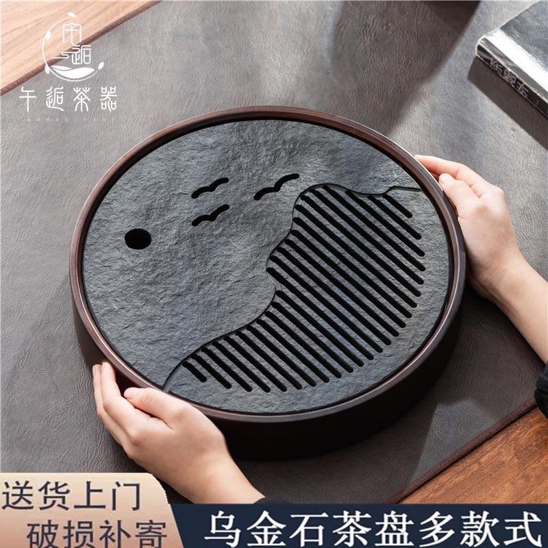 円形天然烏金石茶盤茶海貯蔵排両用軽贅沢アスファルトシンプル小型乾燥泡台家庭用トレー