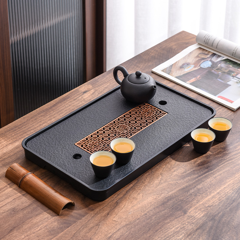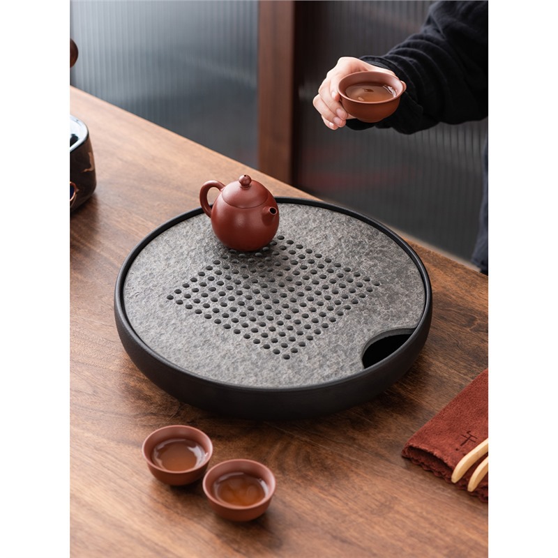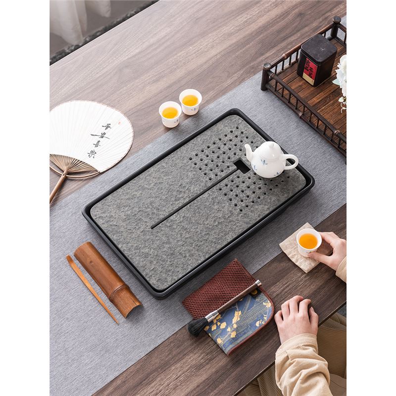 ティートレイ家庭用黒金石トレイシンプルなセラミック収納と排水の二重目的カンフーティーセット小さな石排水トレイ