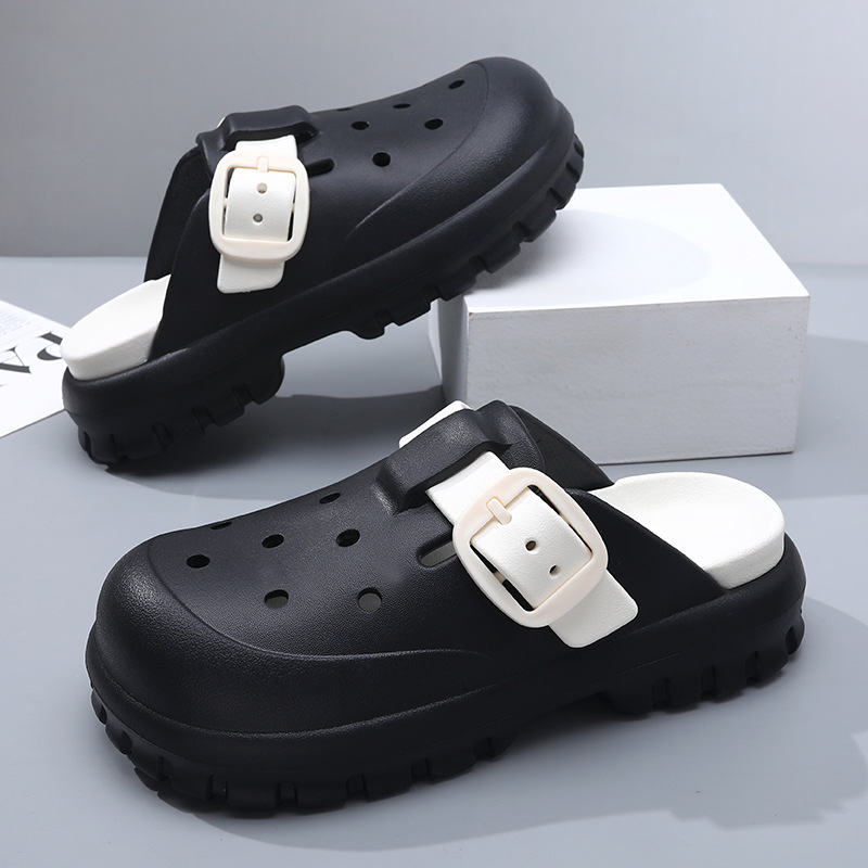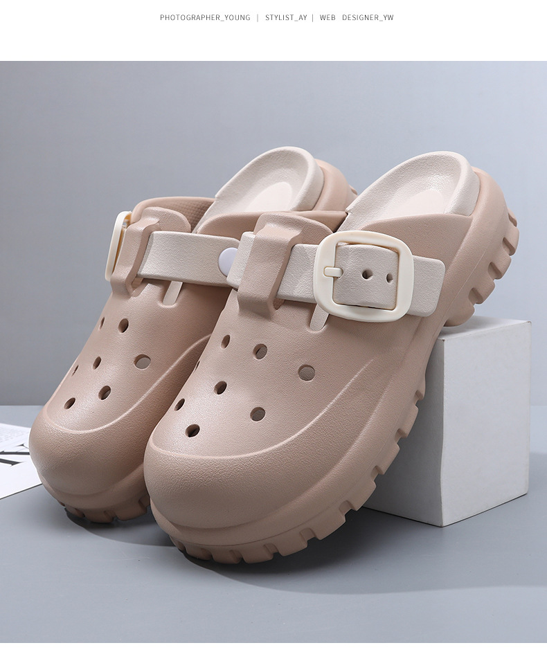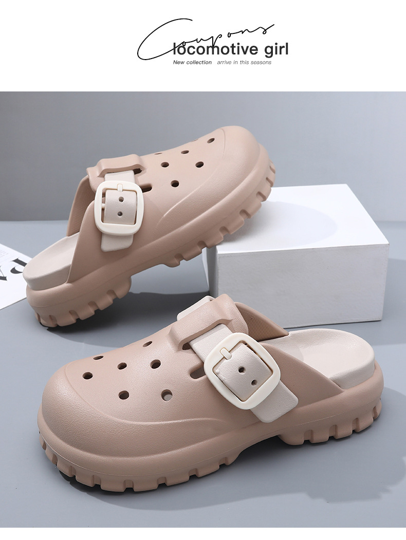 スリッパ夏増加滑り止め包頭穴靴 EVA 消臭女性の厚底アウターウェアビーチ夏滑り止めサンダル