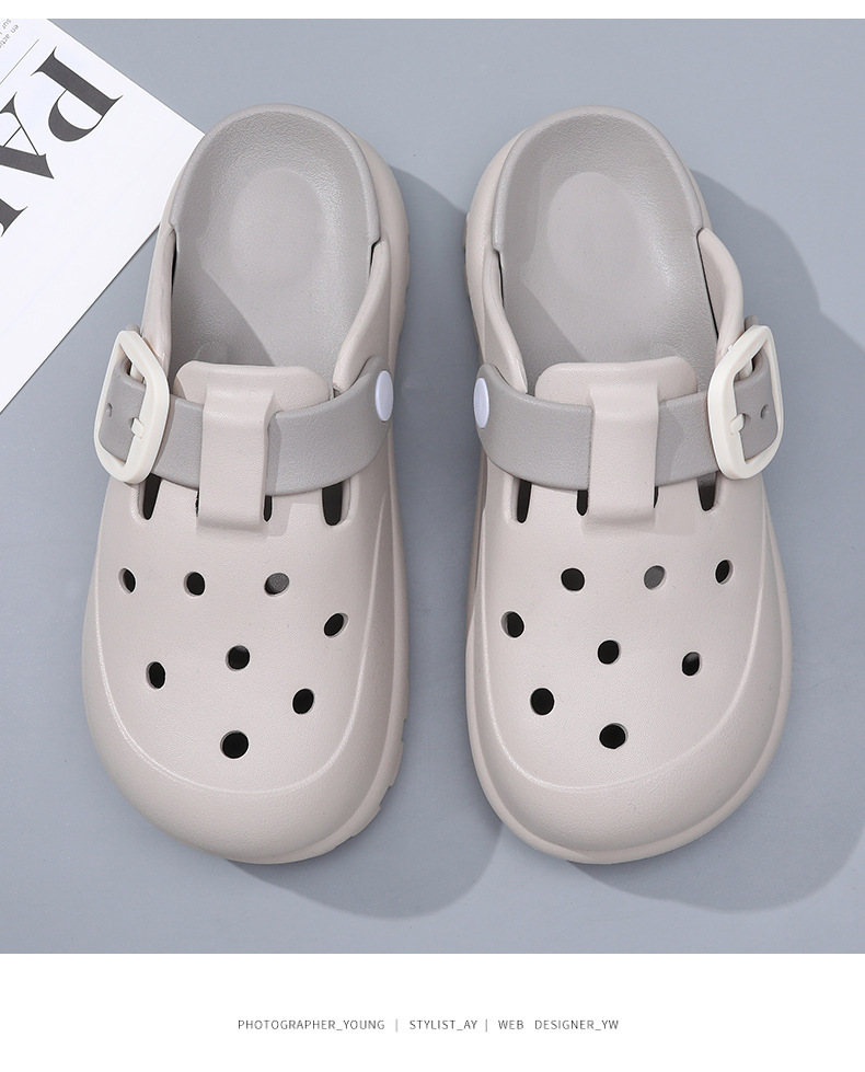 2024男性の純色の穴の靴の厚い底の滑り止めの耐摩耗性のファッションは簡単でカジュアルな屋外の砂浜のメーカーの頭を下げます。