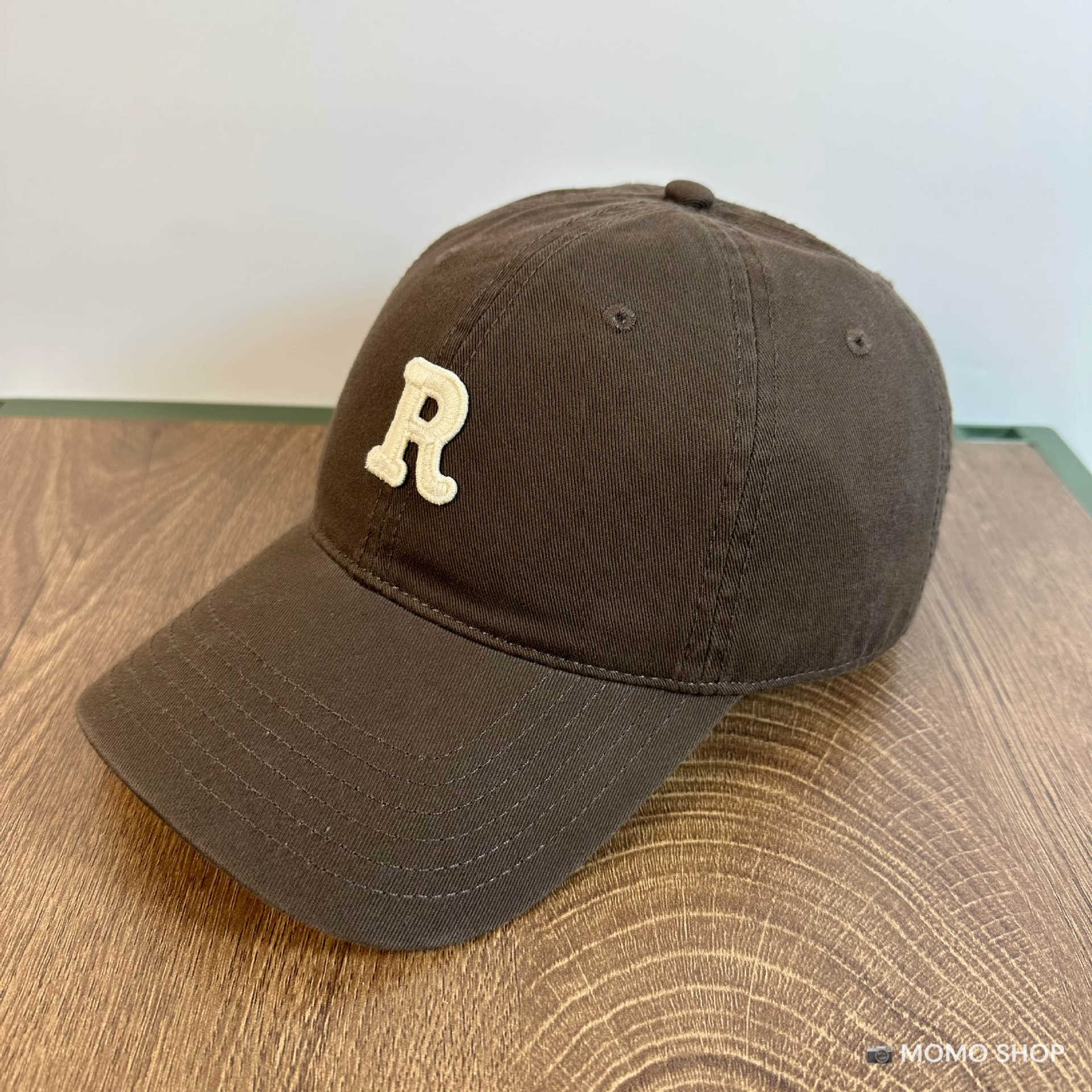 高品質の純綿アルファベットr野球帽男女学生カップルのつばを曲げて運動する帽子