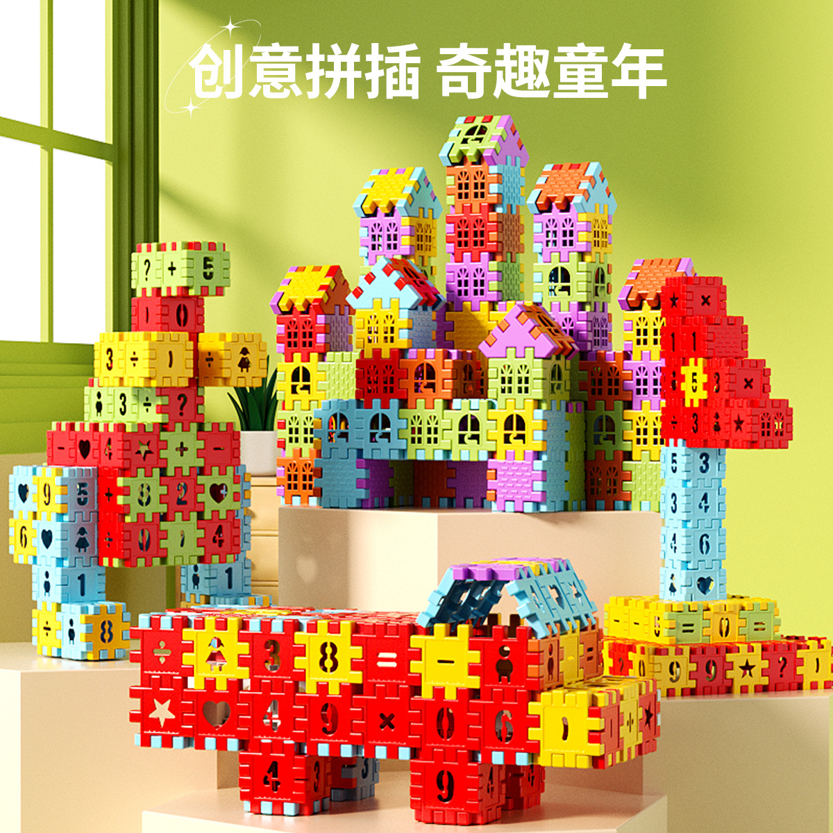 儿童搭房子积木拼装益智玩具3到6岁男女孩大颗粒别墅生日礼物拼图