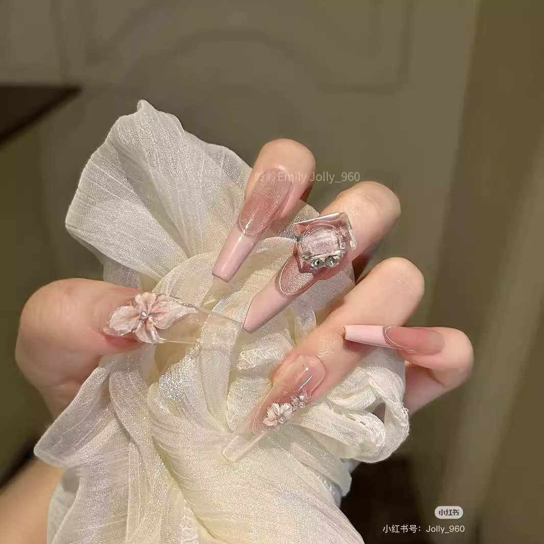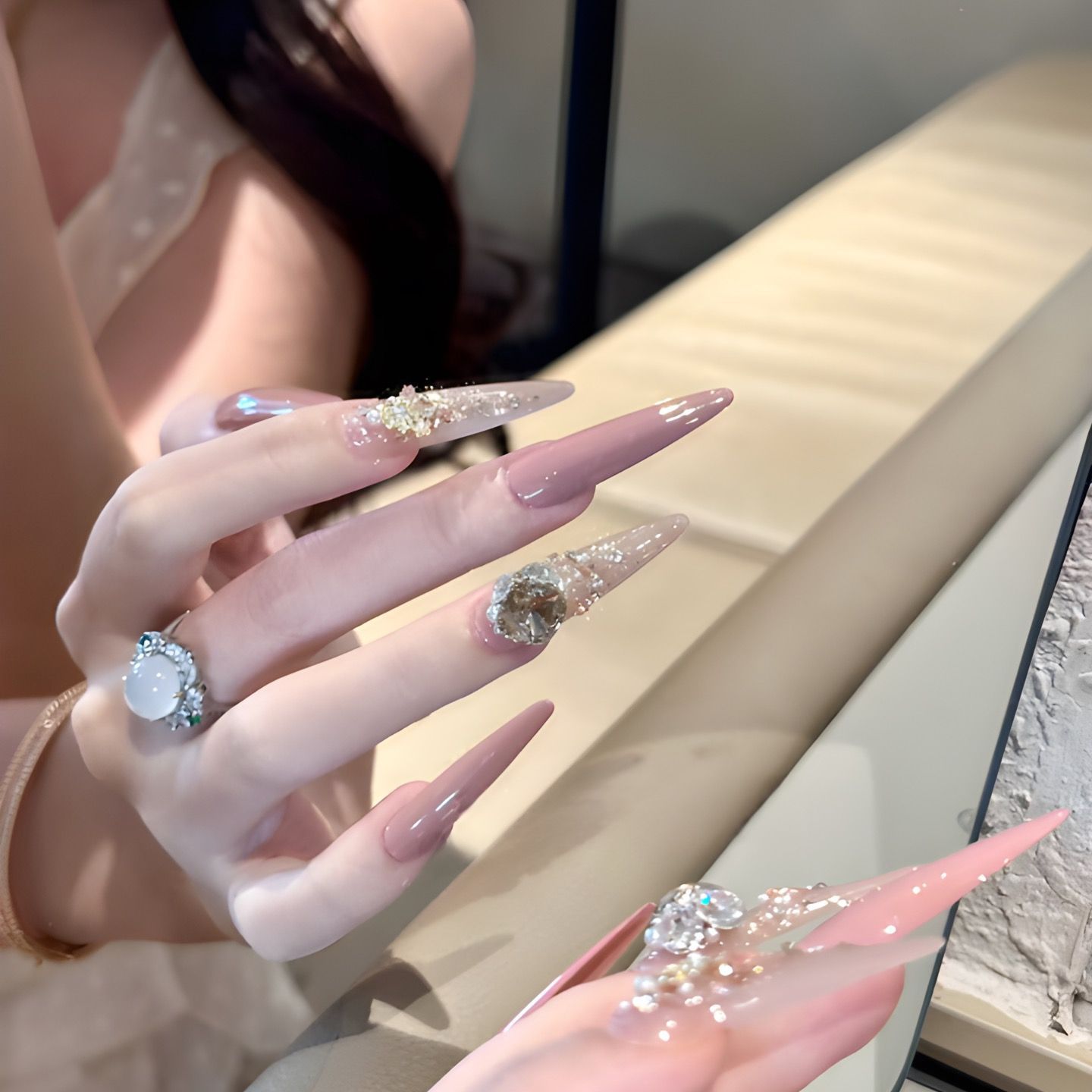 纯手工穿戴甲水晶洛可可香槟塔千金气质风轻奢高级感ins爆闪美甲