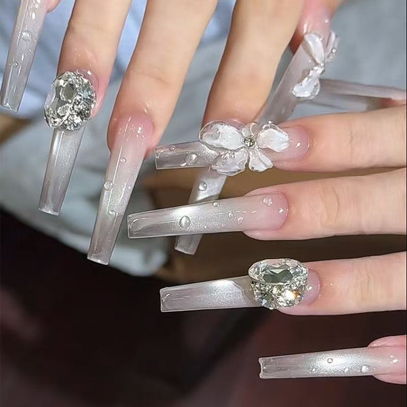 純粋な手作りのネイルの夏の新型のフラッシュの長いタイプのフラッシュのダイヤモンドの新婦の結婚する甲