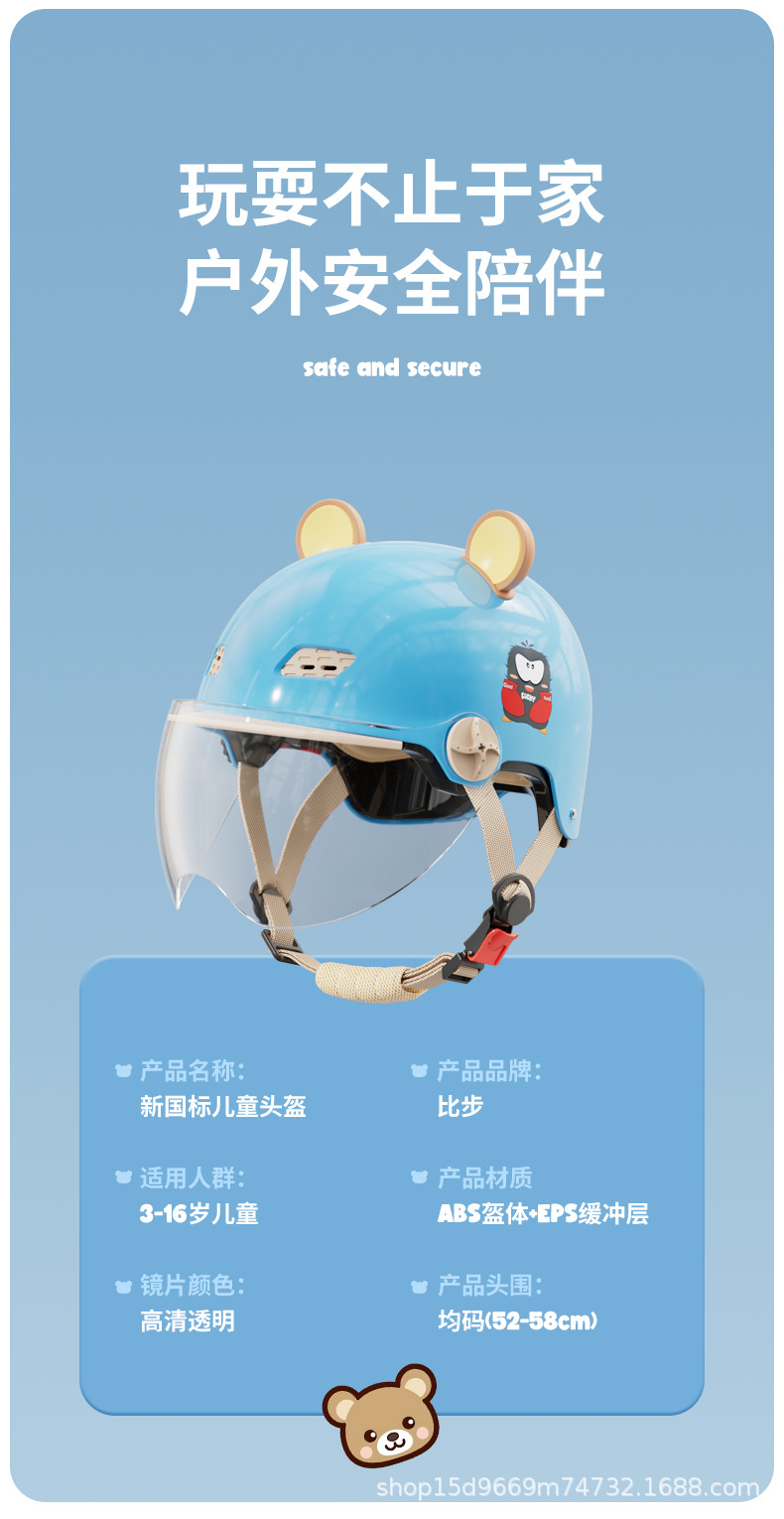 比歩3C認証電気自動車児童ヘルメット男の子女の子四季通用夏3歳から12歳までヘルメット宝