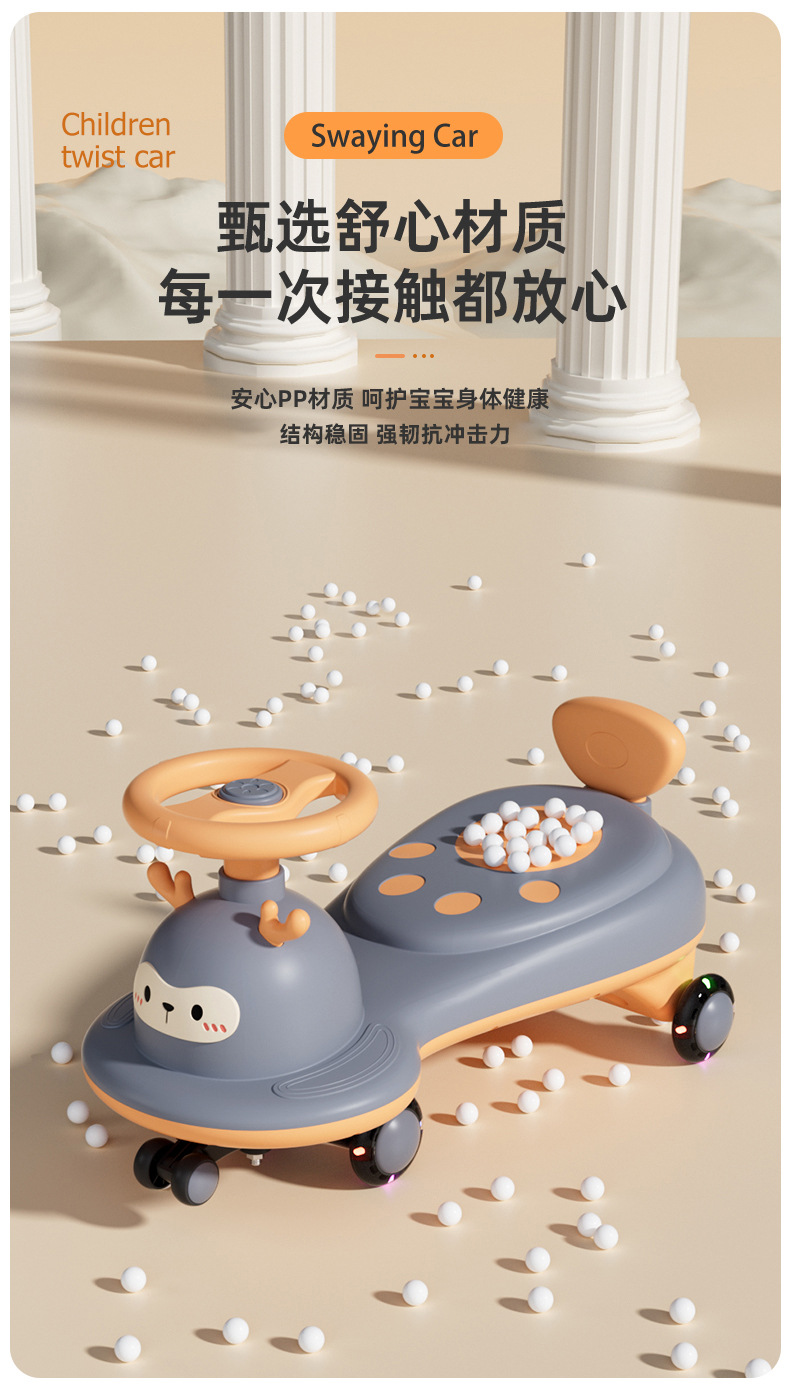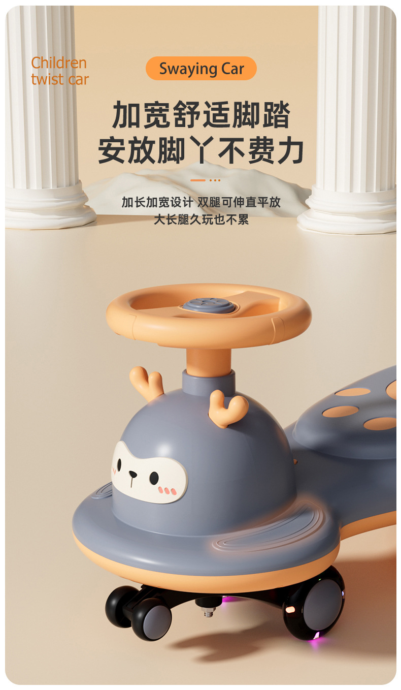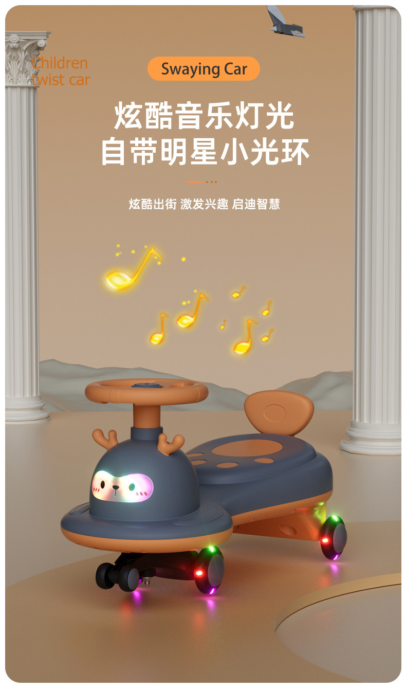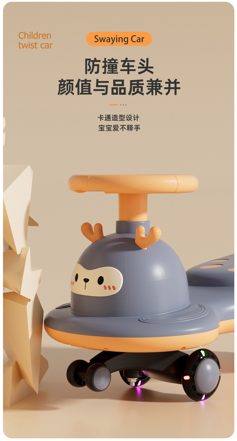 卸売子供ツイストカー1-3歳はライト付きのスイングカーに乗ることができます。