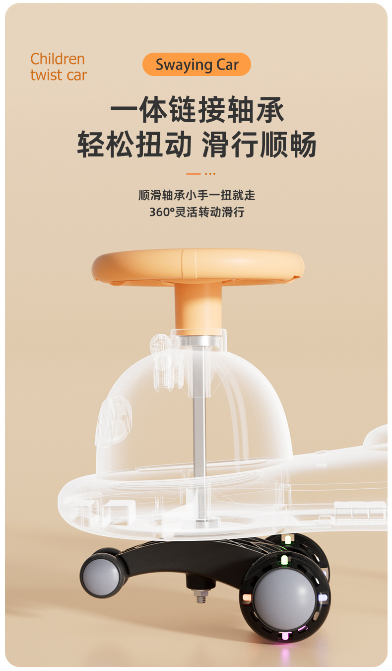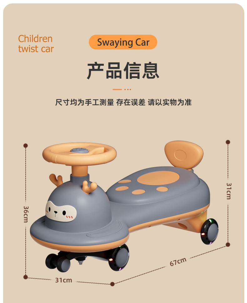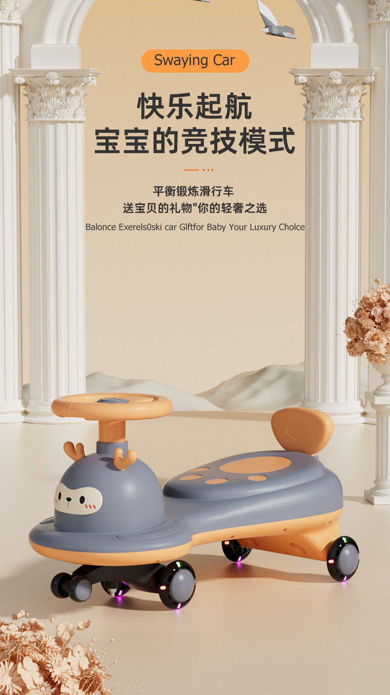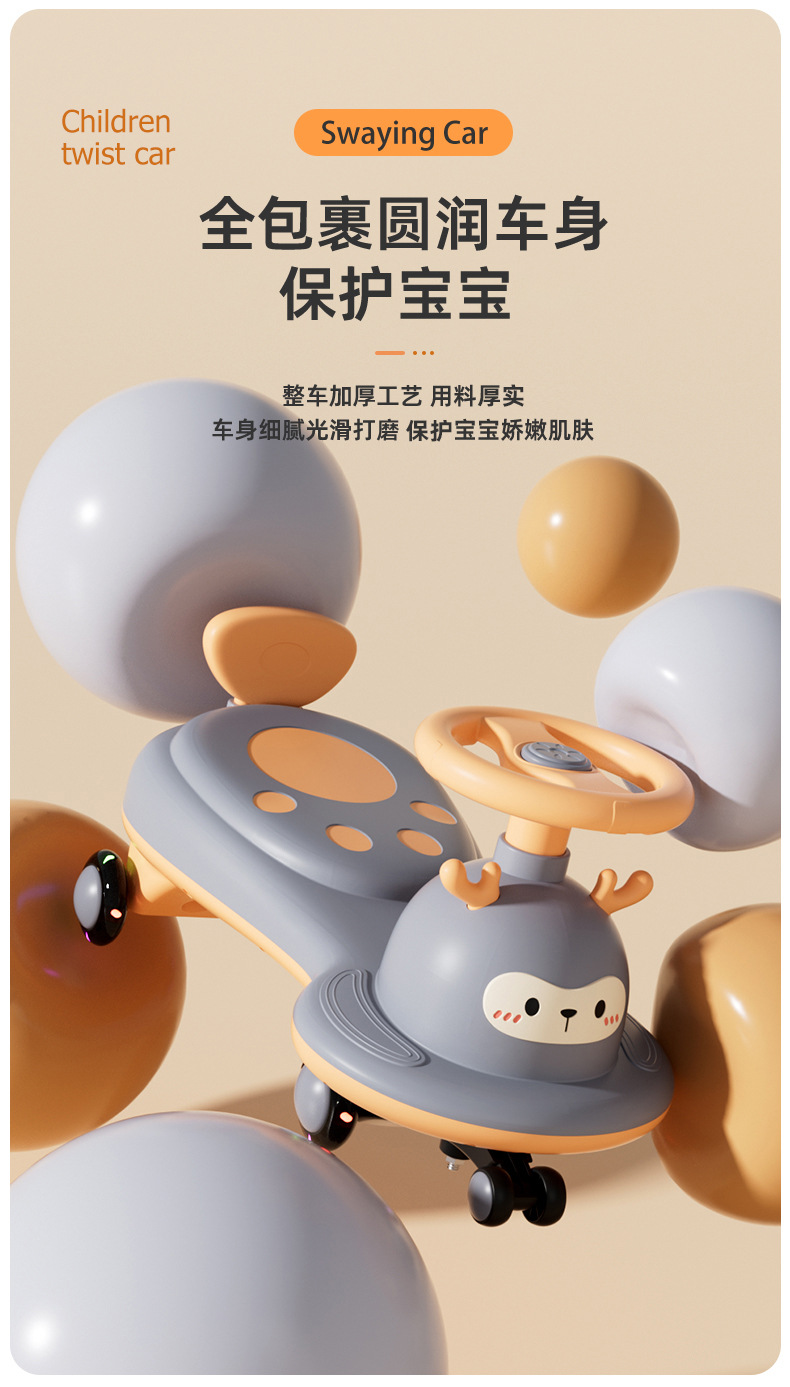 卸売子供ツイストカー1-3歳はライト付きのスイングカーに乗ることができます。