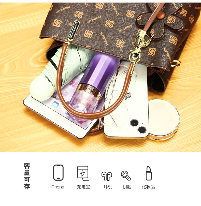 バッグ2025女性バッグ新型pu百合大容量ハンドバッグ女性シングルショルダーバッグバケツバッグ女性クロスボーダー