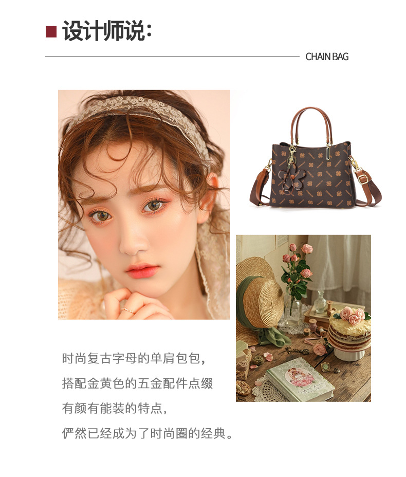クロスボーダーバッグ、ハイエンドレトロ大容量プリントレディースバッグ、新しいファッショントートバッグ、ショルダーバッグ、女性用ハンドバッグ