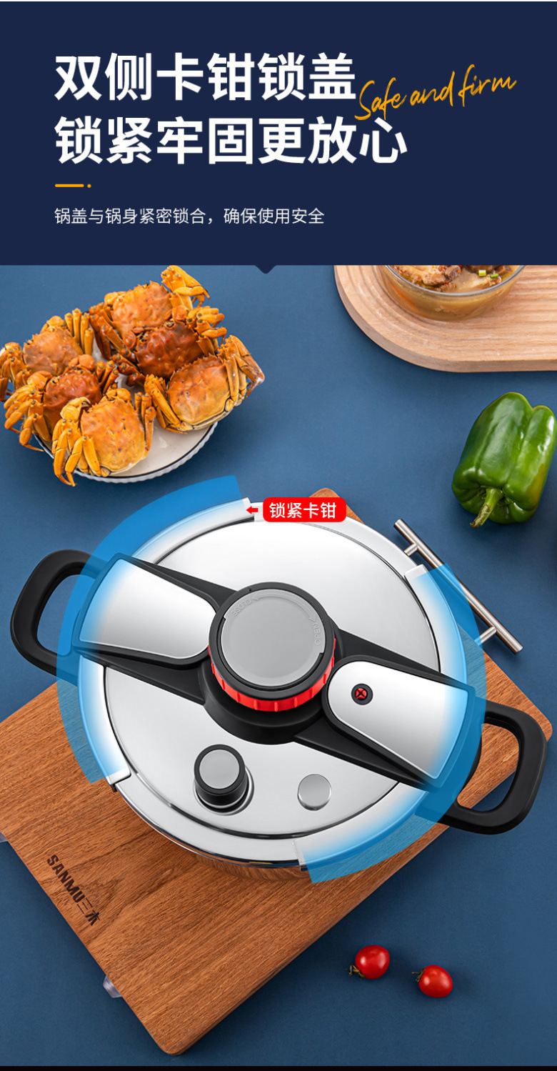 カラー 片手開閉圧力鍋,新型厚手機械知能高圧鍋100キロパ高圧