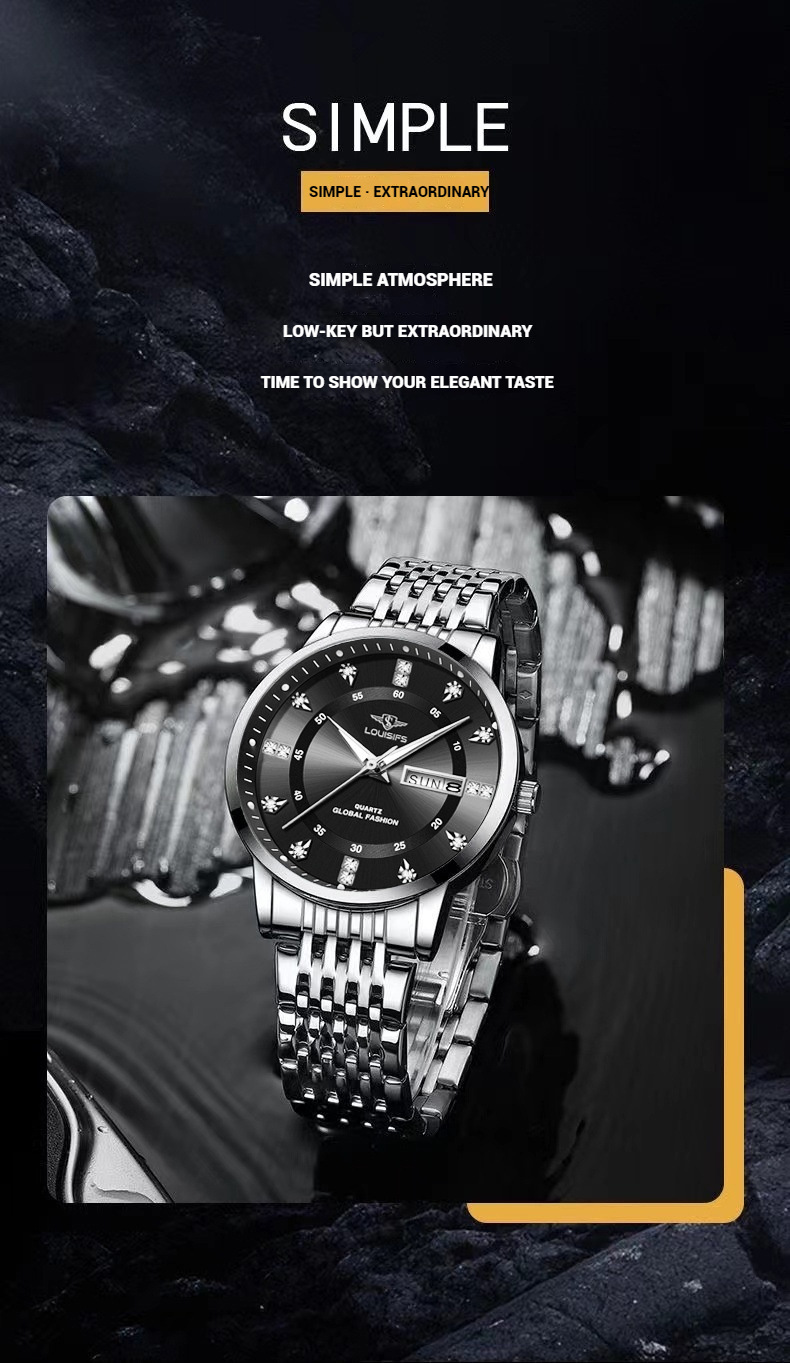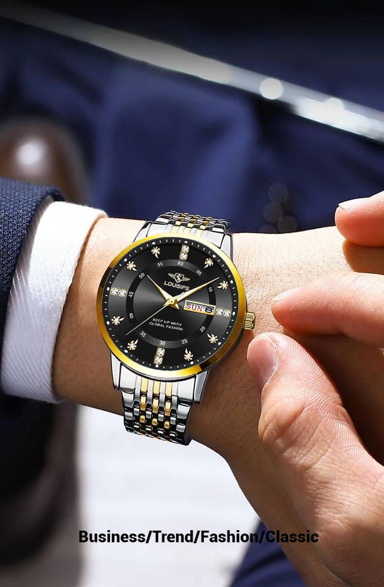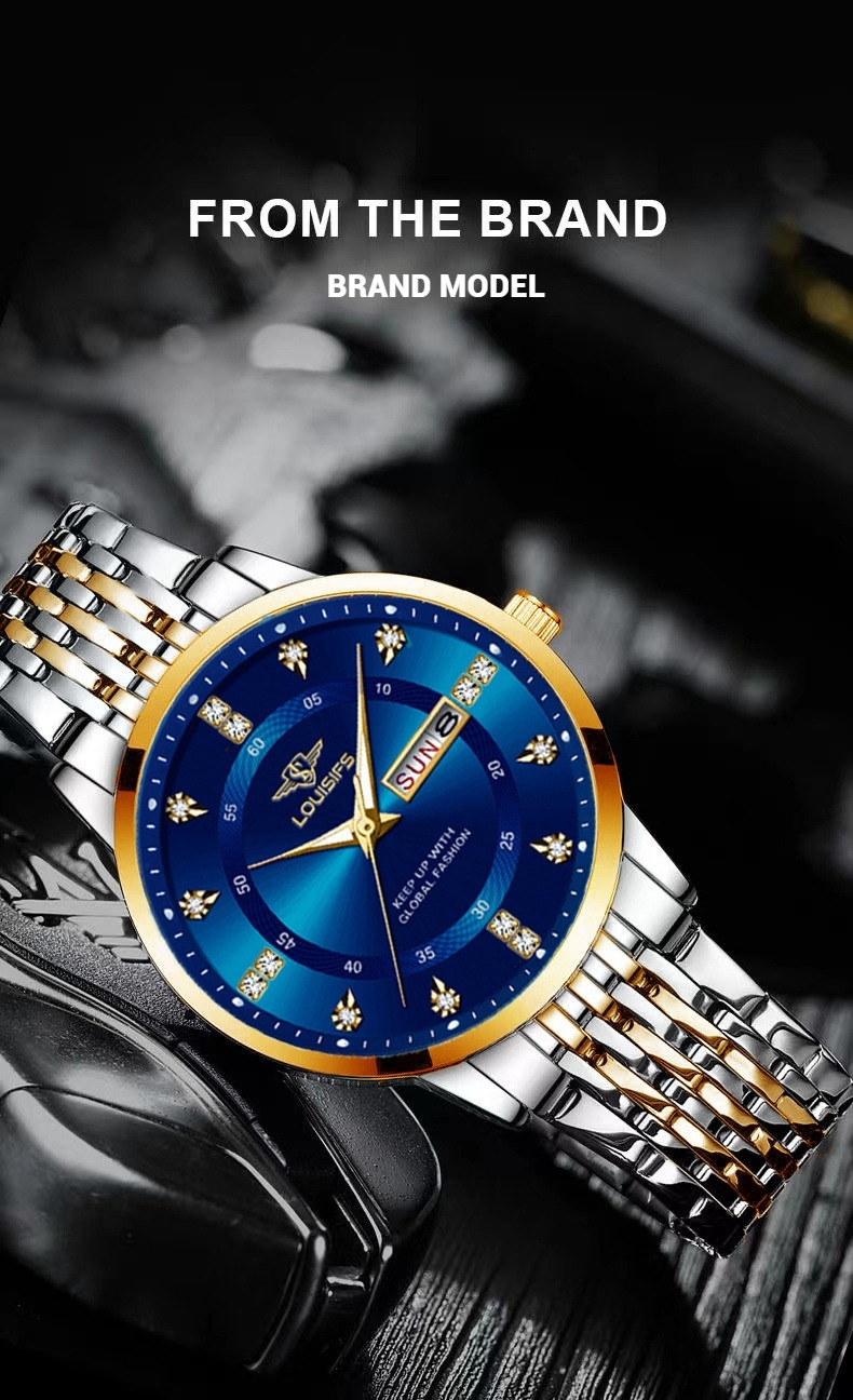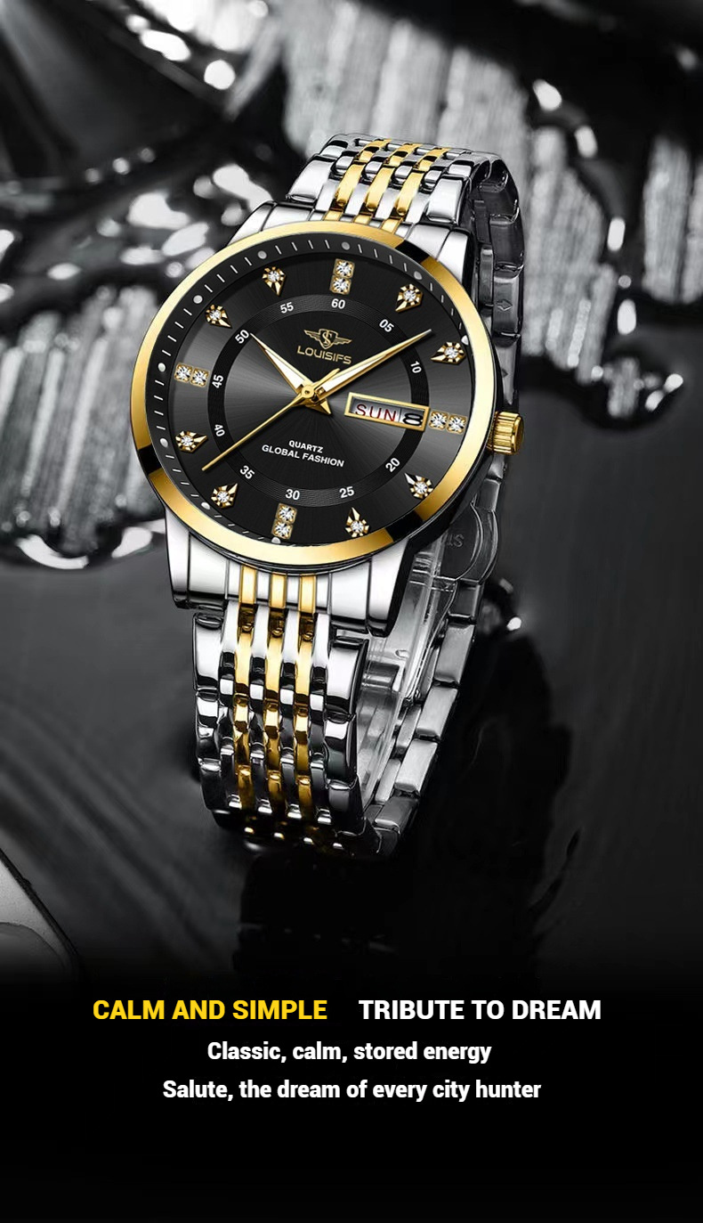 ルイーヴァンスの新型男性腕時計防水夜光ダブルカレンダー韓国版石英腕時計のディザトーン速売代理