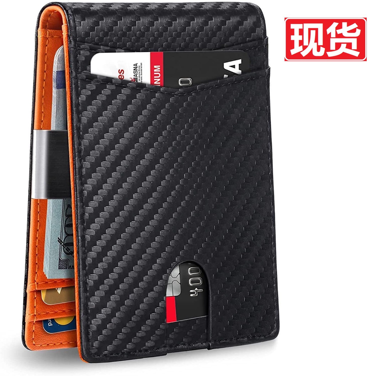 炭素繊維の紋章の男性の財布の財布の二つ折りのふたのカードの箱の盗難防止のブラシの越境の財布の磁気は側を吸収してカードの包みを押します。
