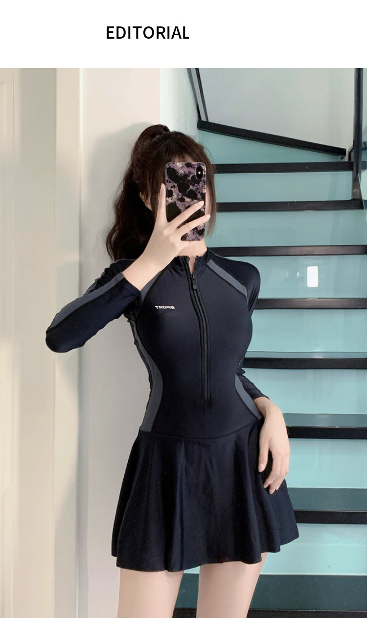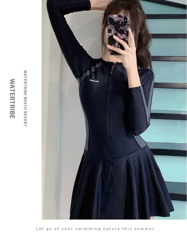 水着の女性の夏のワンピースの長袖の水着の保守的なクロスボーダーの新型の爆発的な爆発の腹の女性の運動の日焼け止めの水着