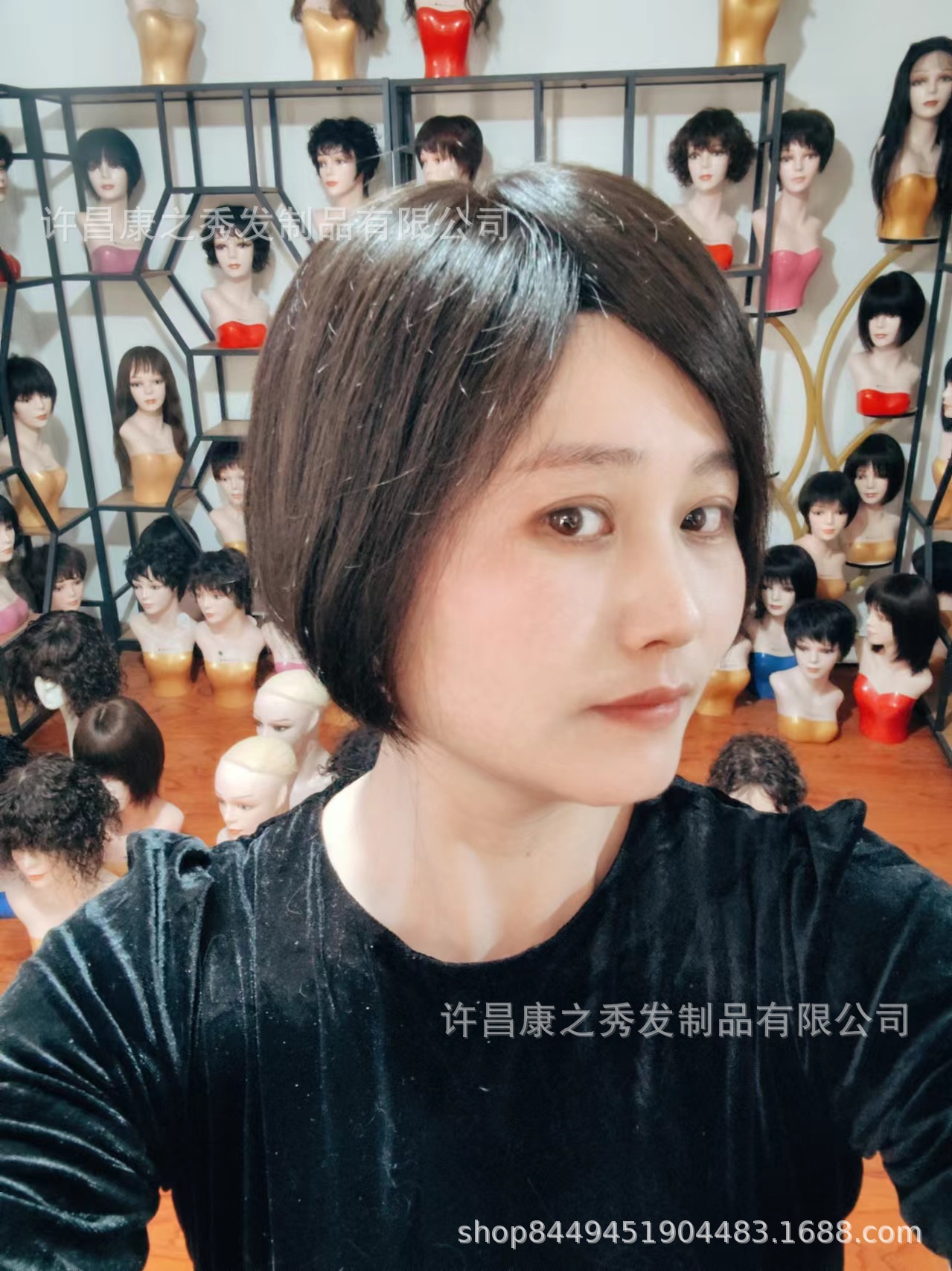 女性と母親向けのメーカー手織り人毛ナチュラルショートヘアファッションニードルスイベルウィッグセットインナーバックル付き