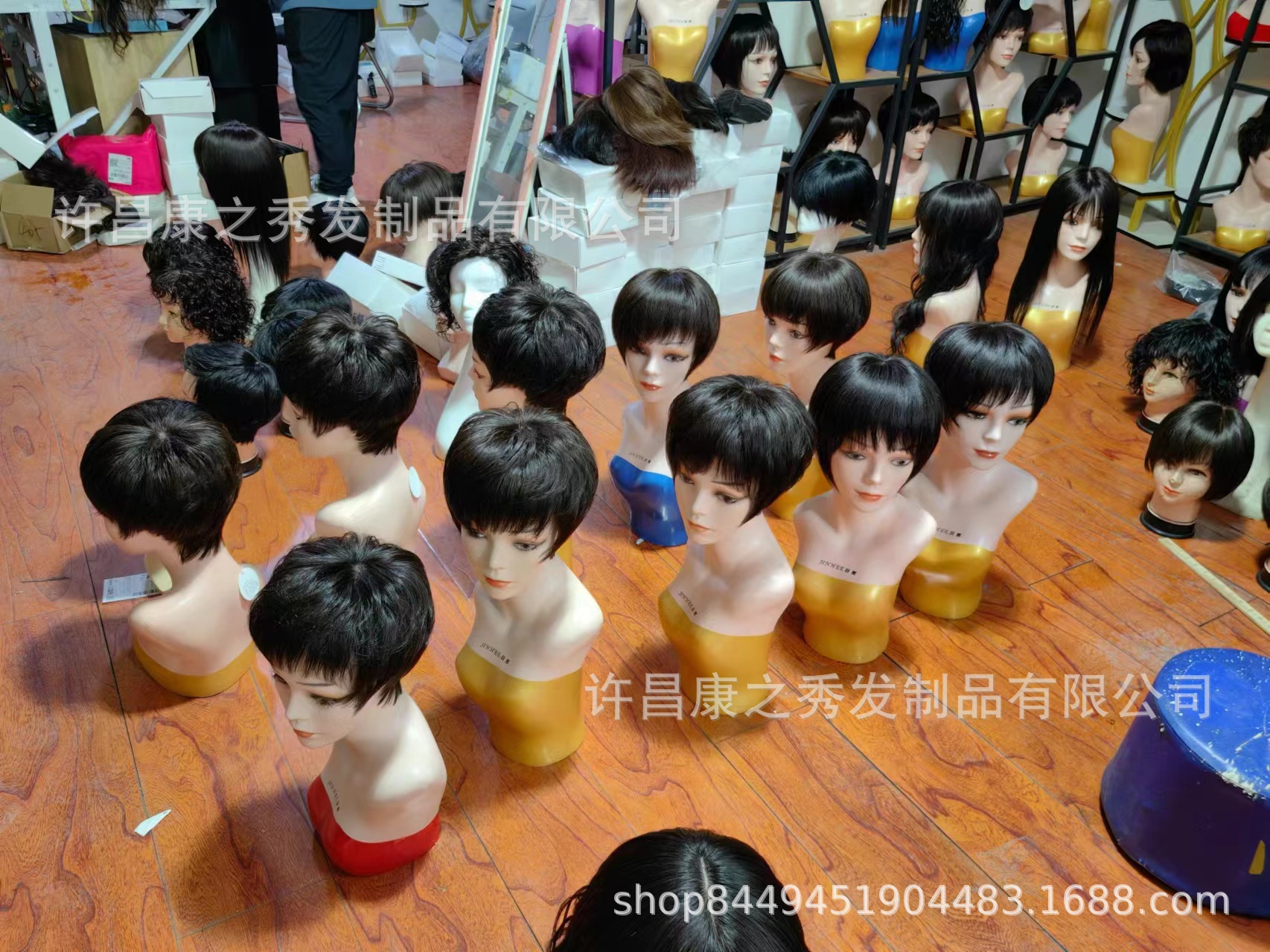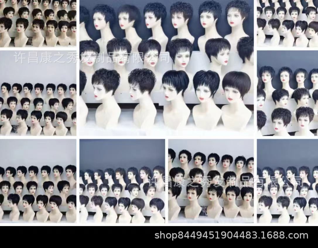 現物の新型の全手織は生地のかつらを回します。ショートヘアはふわふわしています。