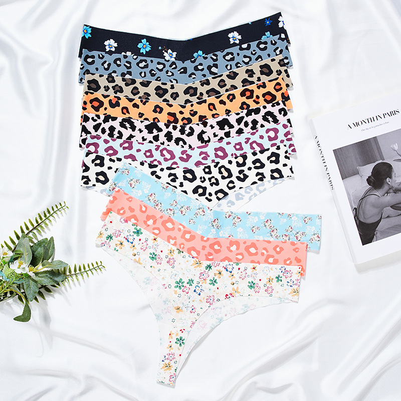 国境を越えたアマゾン豹紋無痕氷糸セクシーt字ズボン砕花プリント低腰ヨガ運動下着