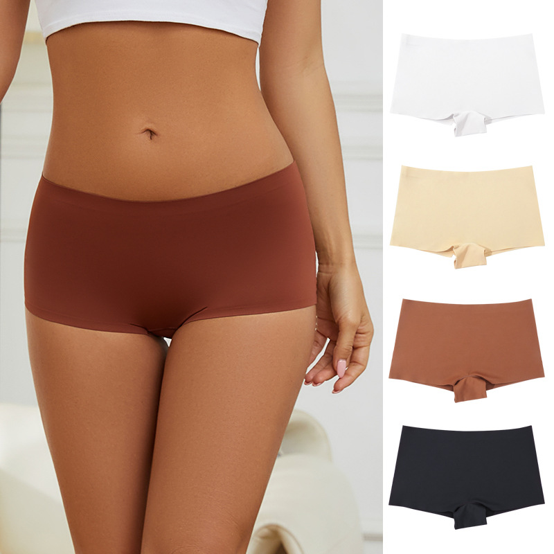ヨーロッパとアメリカのワンピースの女性用シームレスボクサーブリーフは快適で通気性があり、丸まらずに着用できます。ミッドウエストのアイスシルクボクサーブリーフです。