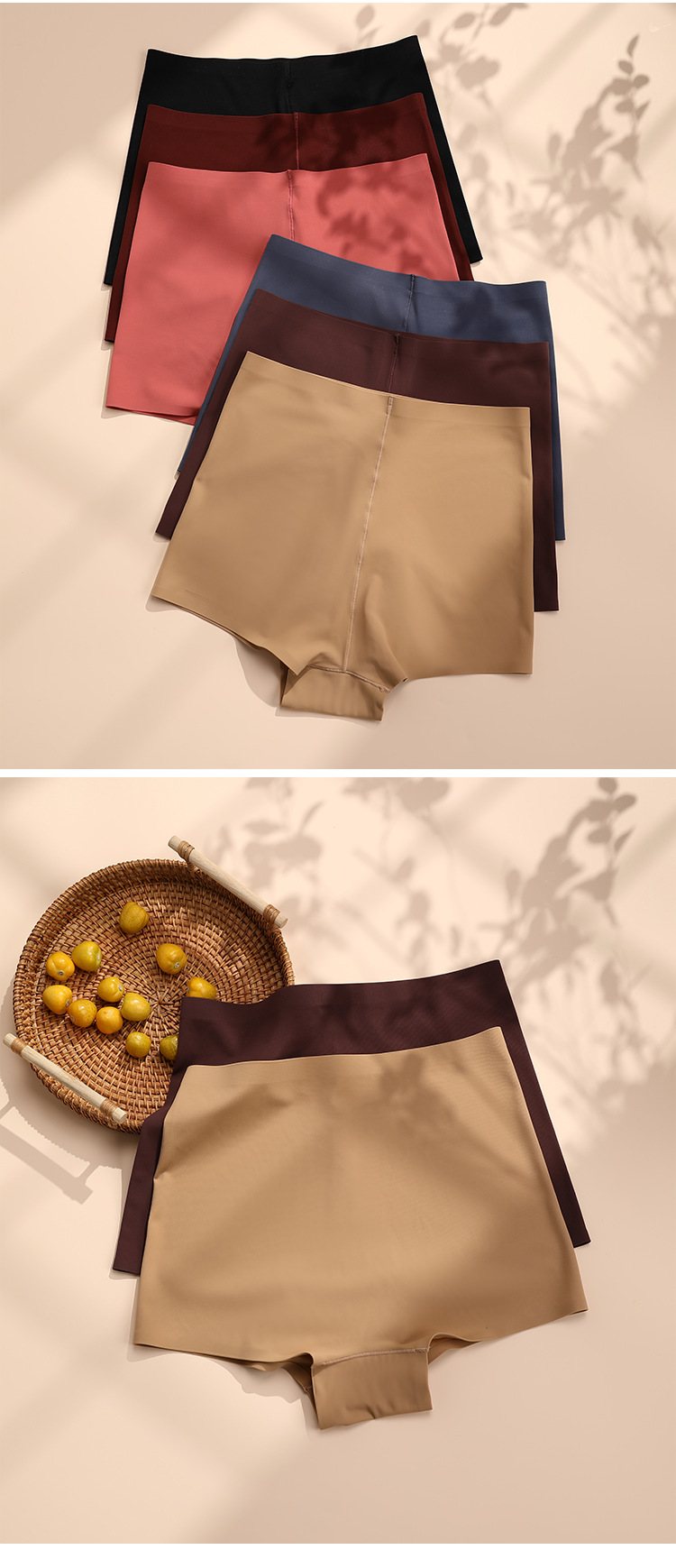 クロスボーダー・シームレス・セーフティショーツ 女性用 薄手 純綿クロッチ ワンピース型 アイスシルク 通気性 露出防止 ボクサーショーツ