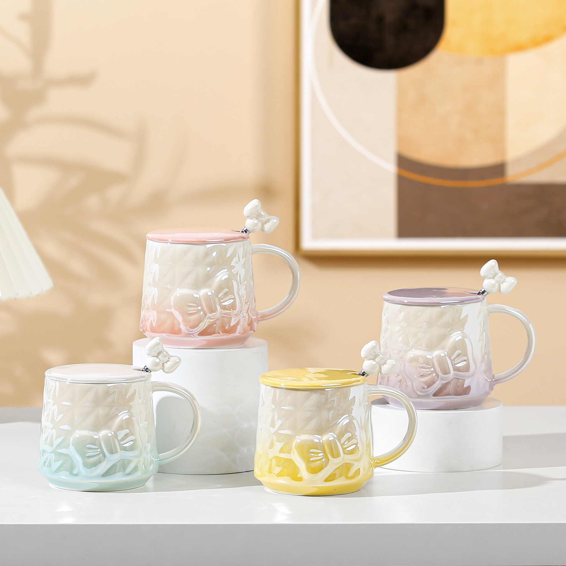 创意可爱蝴蝶结陶瓷杯情侣网红马克杯随手礼水杯套装礼品渐变特色