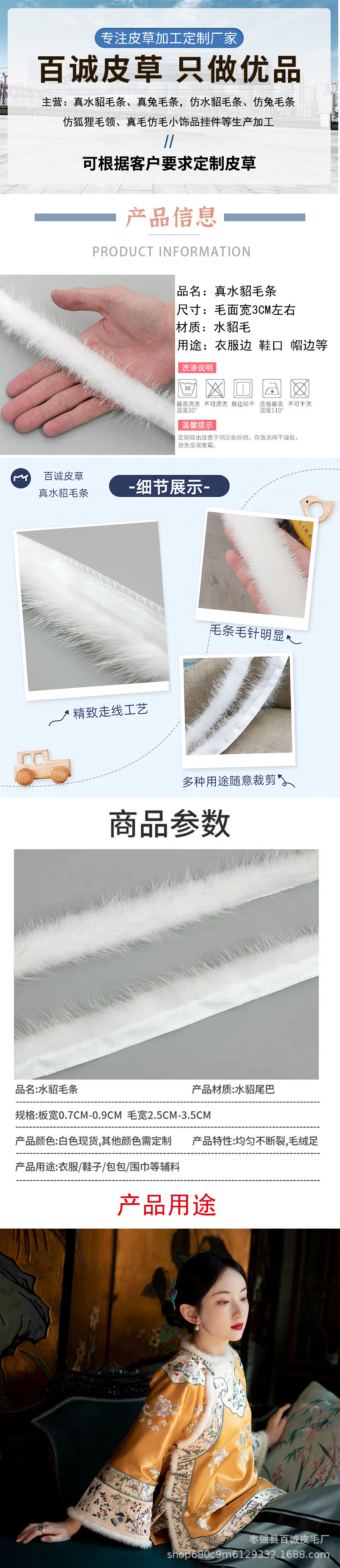 厂家批发水貂真毛条中国风服饰毛条旗袍汉服鞋子装饰毛边毛条辅料