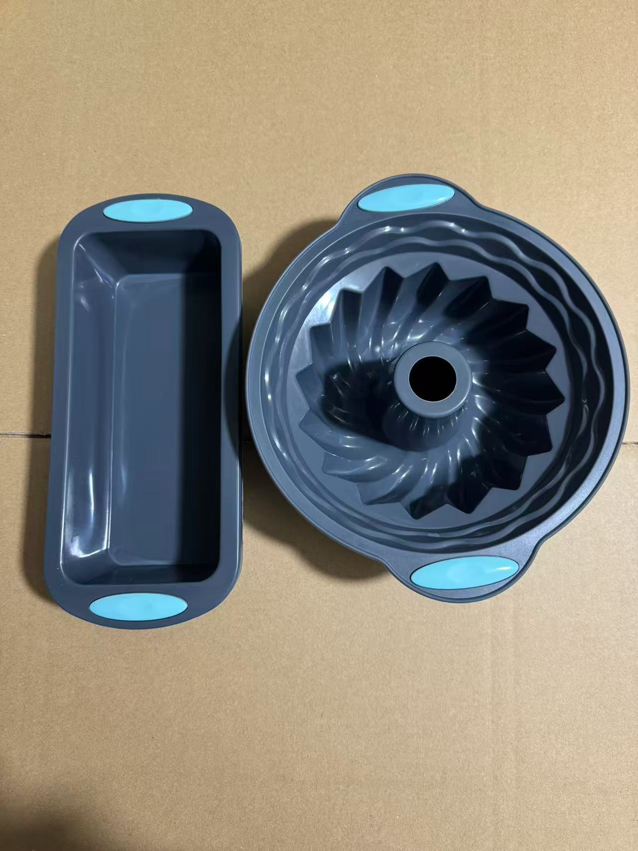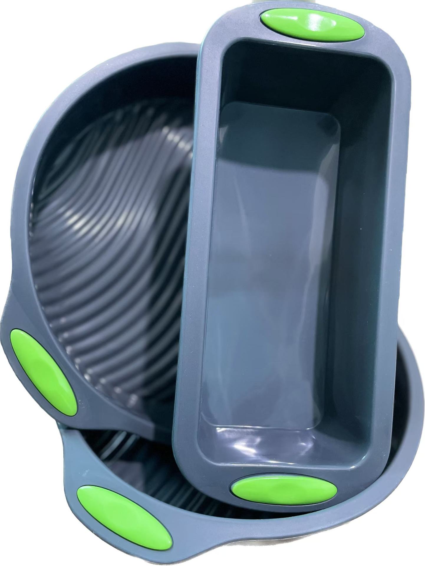 跨境供货硅胶两件套装 双色双耳9寸圆形蛋糕模具 吐司盘 烘焙工具