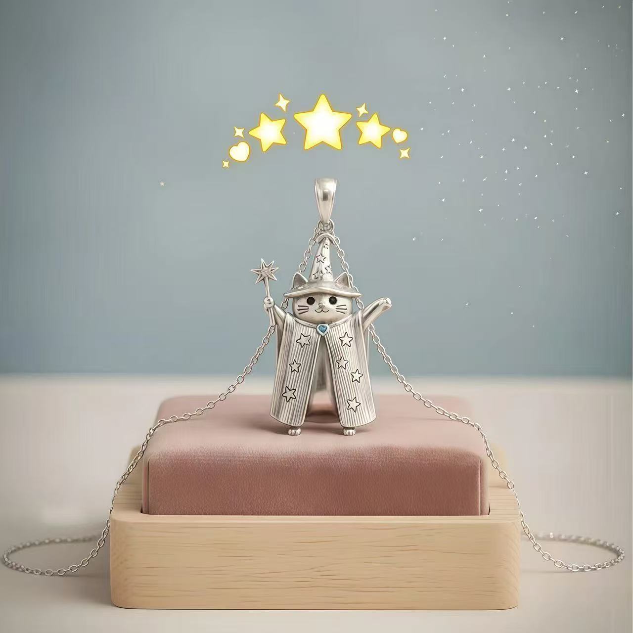可爱猫咪巫师猫魔法帽设计吊坠项链小众独特高级感个性精致锁骨链
